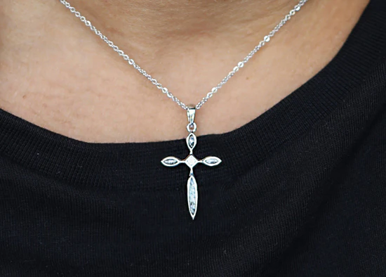 Nasz naszyjnik memorialny składa się z dwóch elementów: łańcuszka o długości 40 cm oraz wisiorka w kształcie krzyża, którego końce są wypełnione żywicą, w której możemy zatopić przesłany przez Ciebie materiał, np. prochy, sierść lub pukiel włosów. Dodatkowo w samym centrum krzyża umiejscowiliśmy pojedynczy drobny kryształek.
