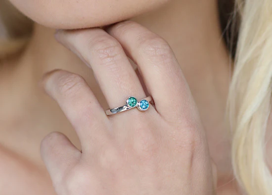 Nasz pierścionek memorialny jest prosty i subtelny, przez co jest bardzo uniwersalny. Będzie stanowił dyskretne uzupełnienie biżuteryjne na co dzień. Ma prostą obręcz, na której znajdują się dwie okrągłe oprawki wypełnione żywicą, w których możemy zatopić przesłany przez Ciebie materiał, np. prochy, sierść lub pukiel włosów.