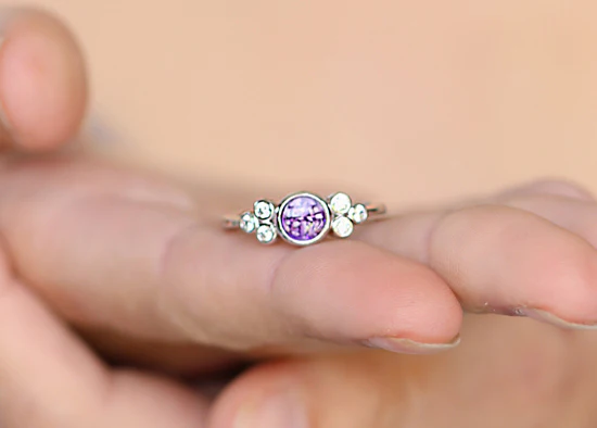 Pierścionek z prochami / włosami / sierścią w żywicy Memorialny z drobnymi kryształkami - PRAISE