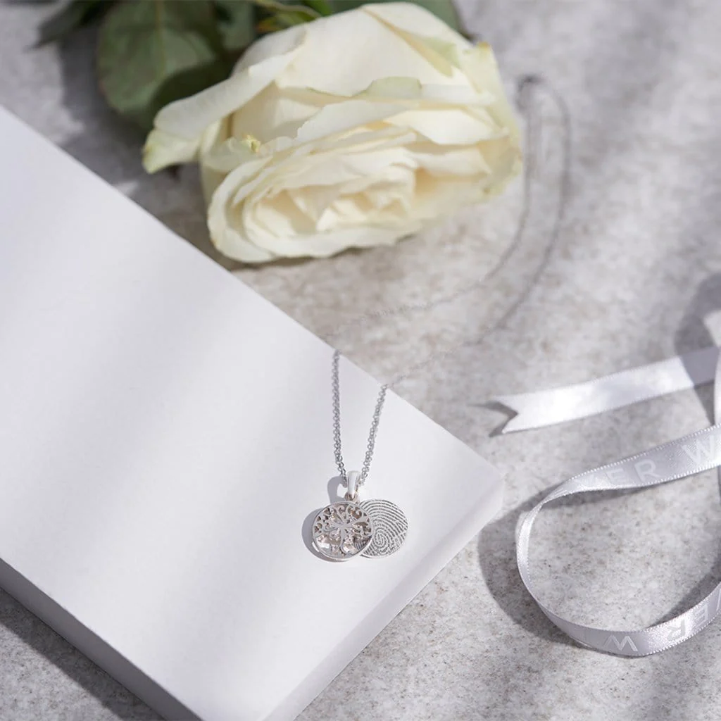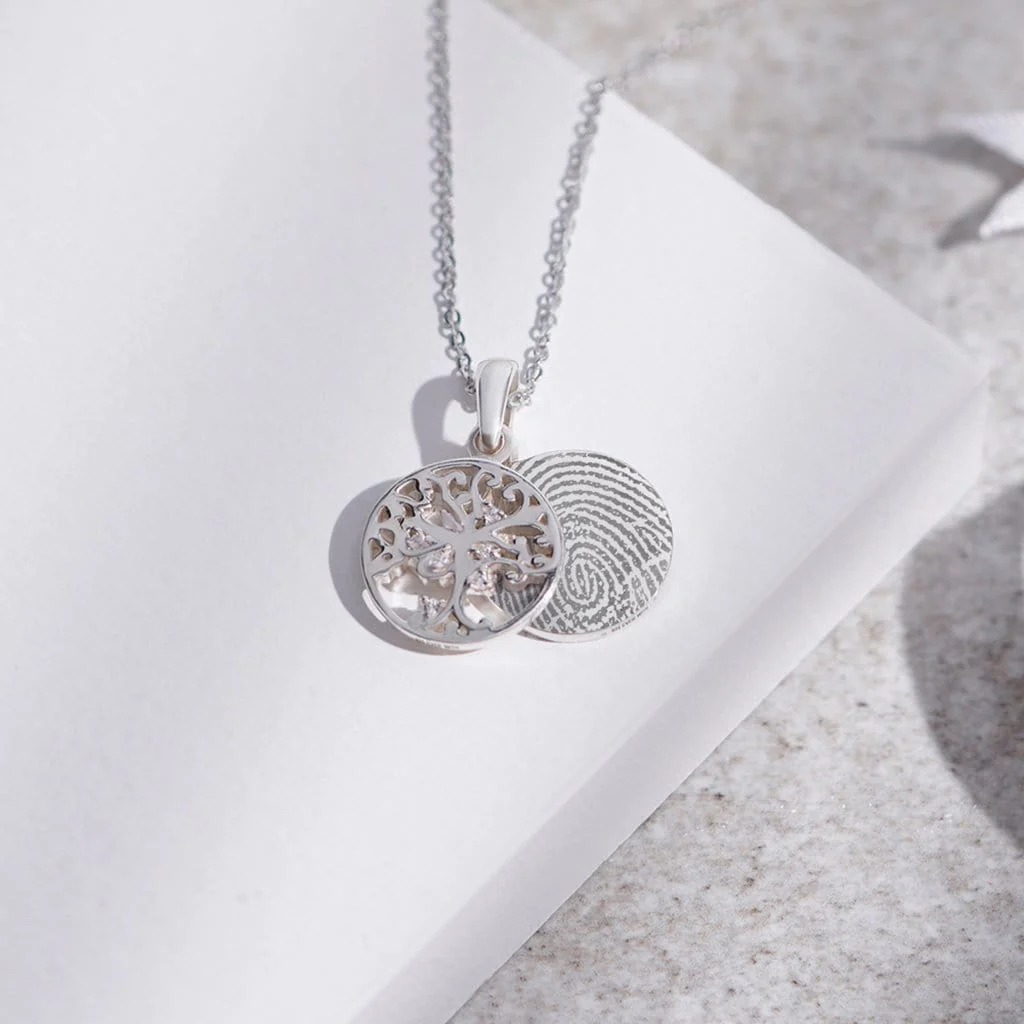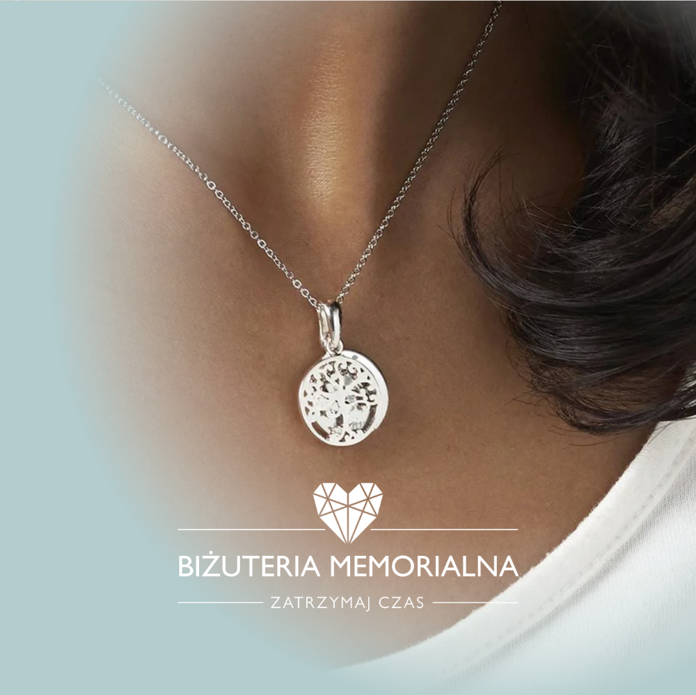 Naszyjnik memorialny - odcisk linii papilarnych DRZEWKO ŻYCIA z kryształkami