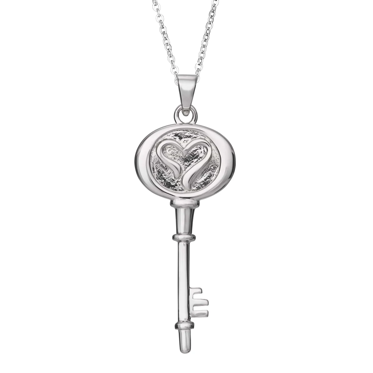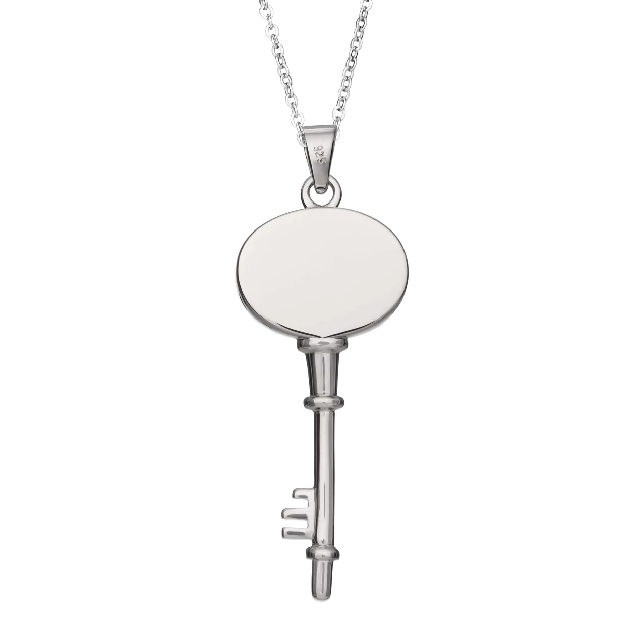 Nasz Naszyjnik Memorialny KEY TO MY HEART składa się z dwóch elementów: łańcuszka o długości 40 cm oraz wisiorka w kształcie klucza, z delikatnym wygrawerowanym serduszkiem w jego górnej części. Wisiorek pełni funkcję osobistego relikwiarza, który napełniasz samodzielnie.