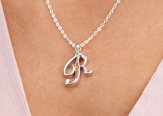 Naszyjnik z prochami / włosami / sierścią w żywicy literka - R