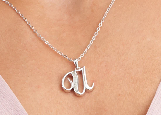 Naszyjnik z prochami / włosami / sierścią w żywicy literka - U