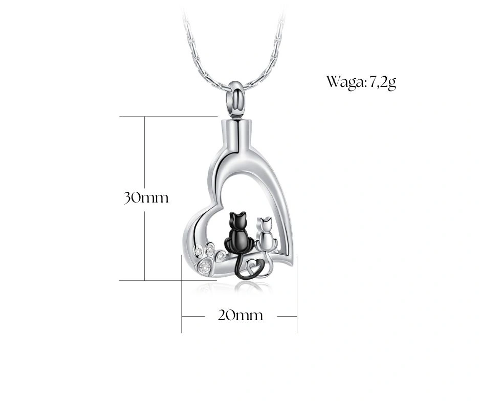 Naszyjnik / relikwiarz na prochy ze stali szlachetnej CATS IN MY HEART
