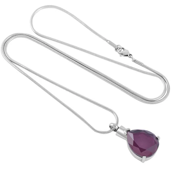 Naszyjnik / relikwiarz na prochy ze stali szlachetnej FIOLETOWA KROPLA