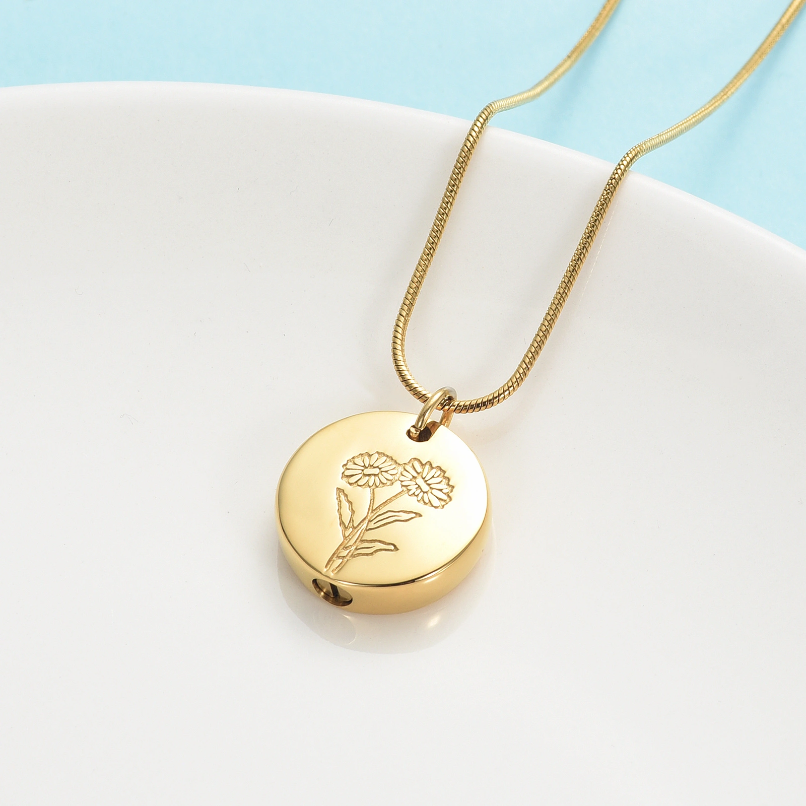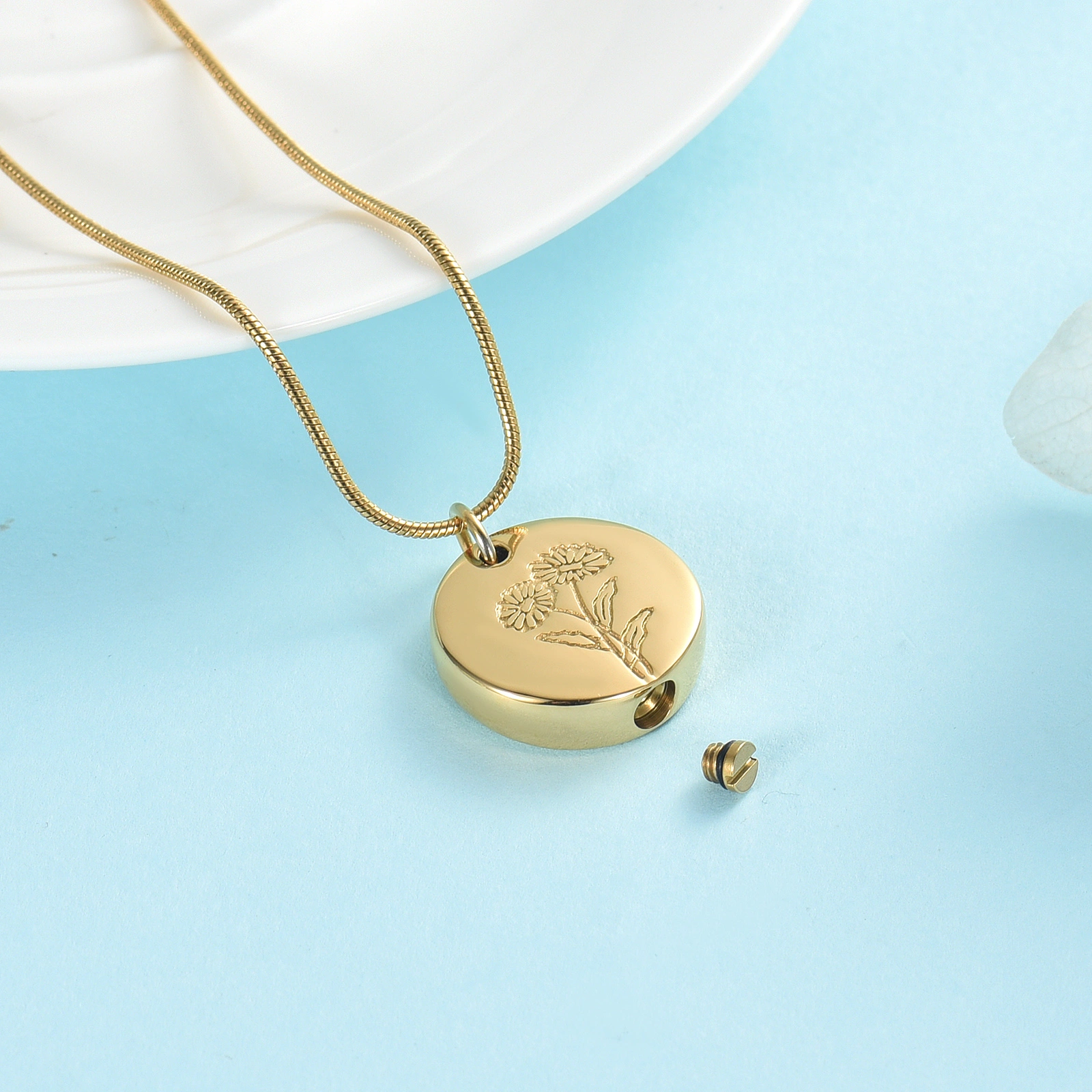 Naszyjnik / relikwiarz na prochy ze stali szlachetnej KOŁO FLOWERS