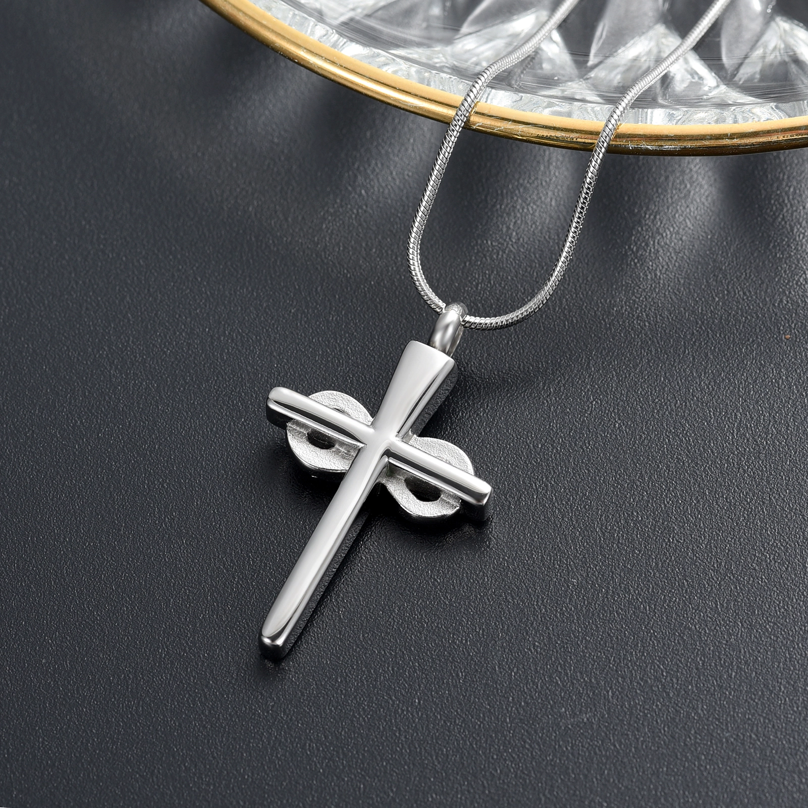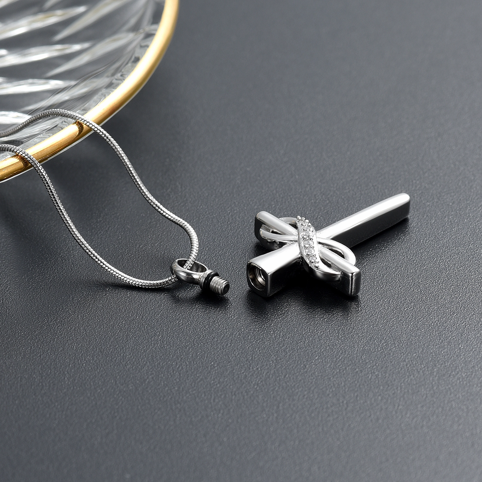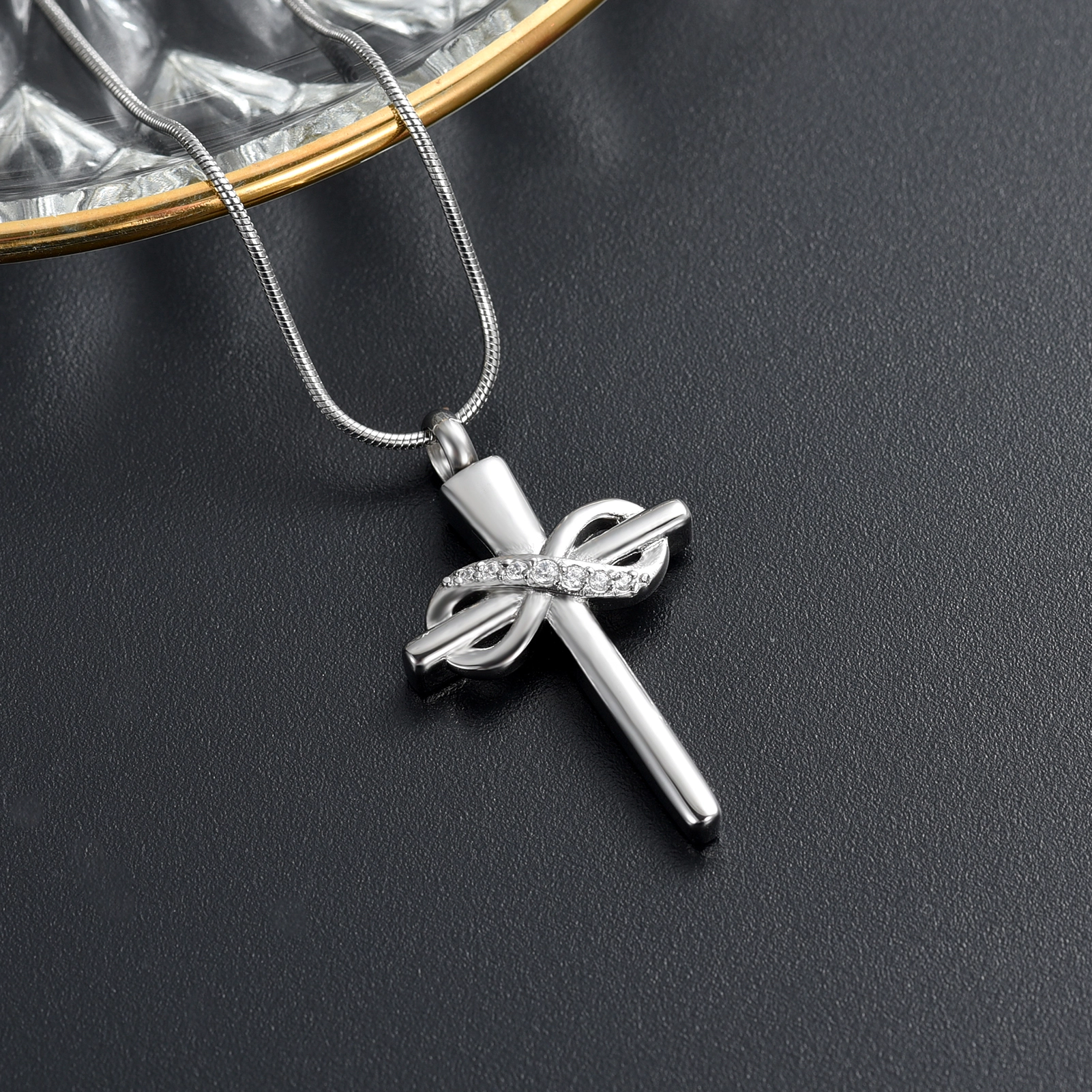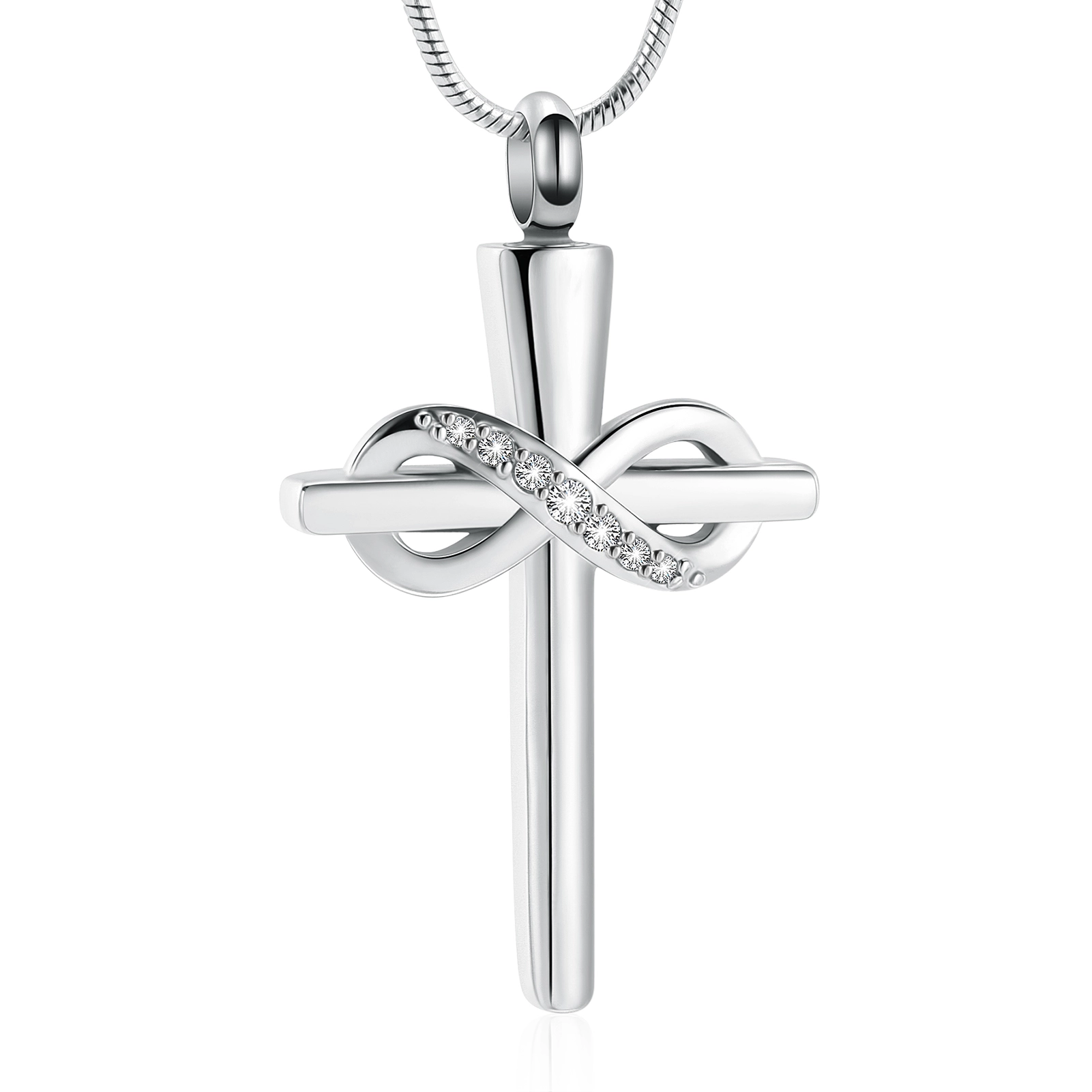 Naszyjnik / relikwiarz na prochy ze stali szlachetnej KRZYŻ Z NIESKOŃCZONOŚCIĄ