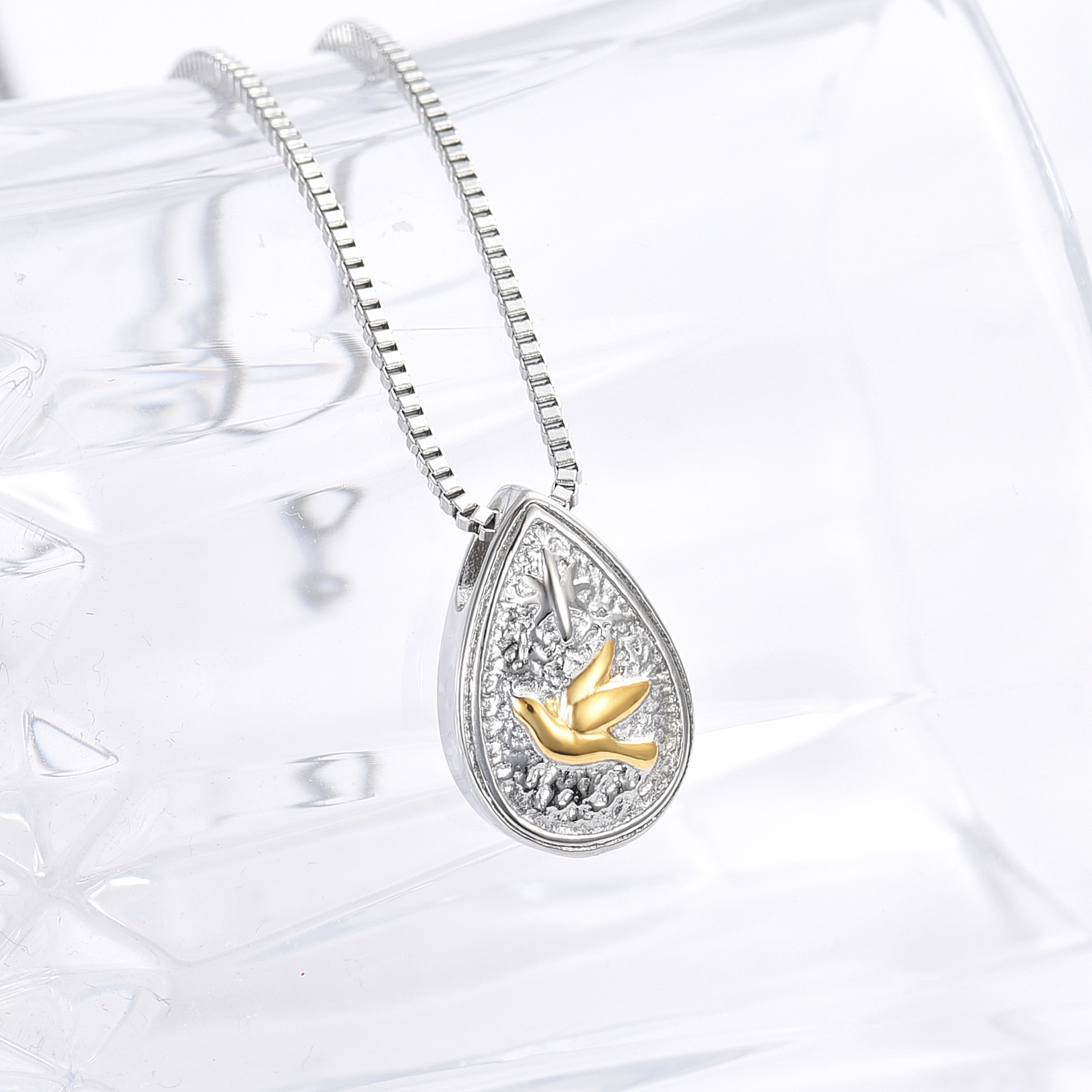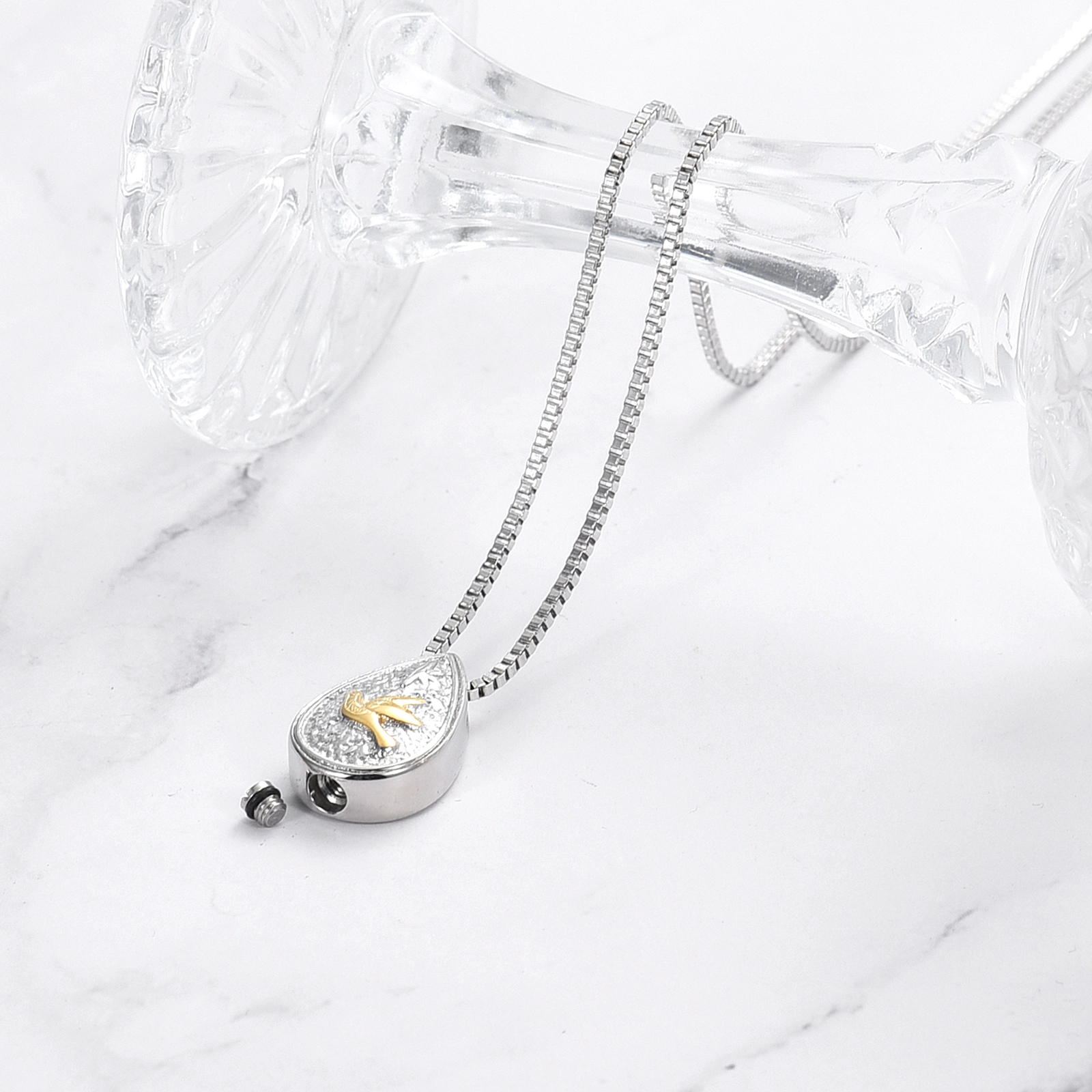 Naszyjnik / relikwiarz na prochy ze stali szlachetnej ŁEZKA GOLD BIRD