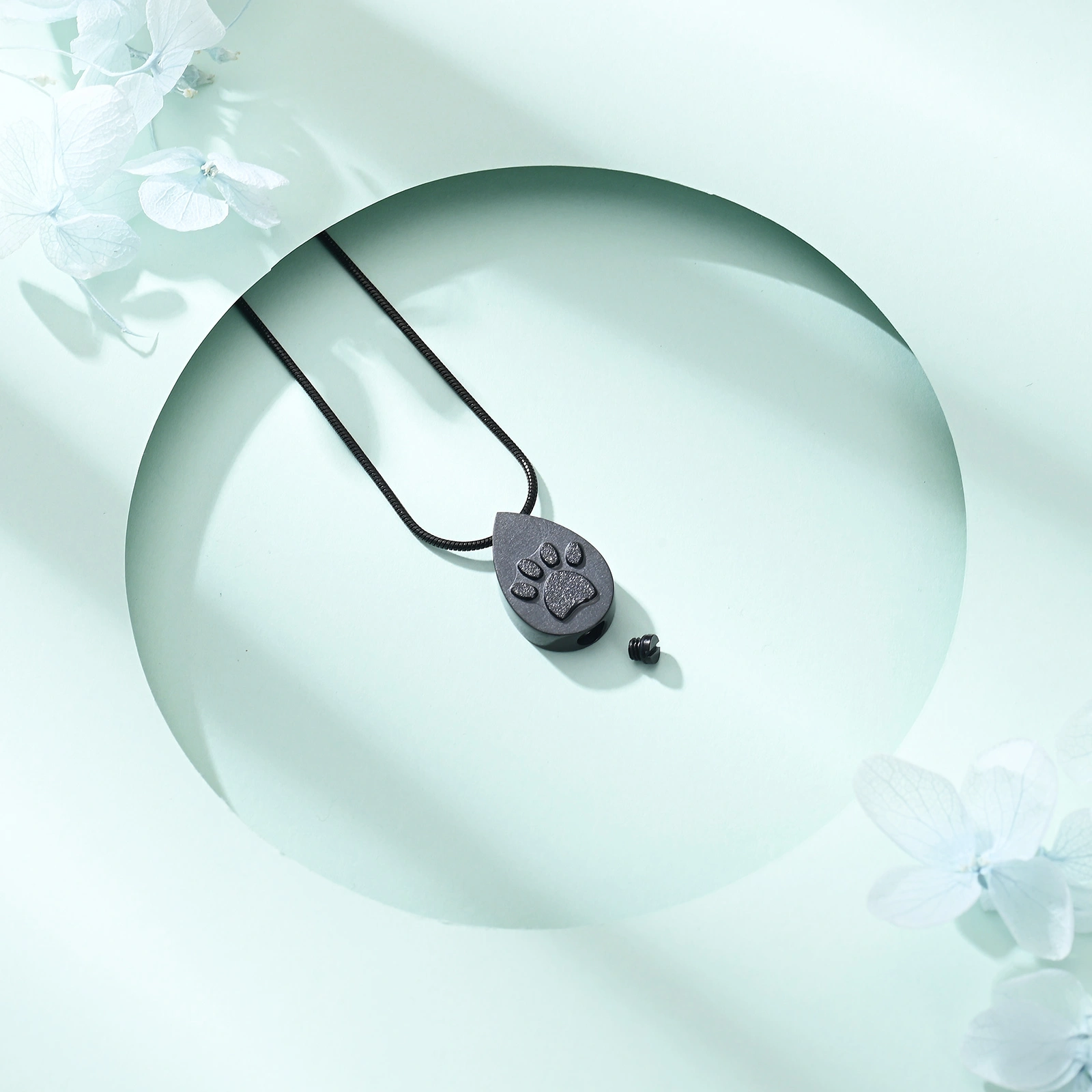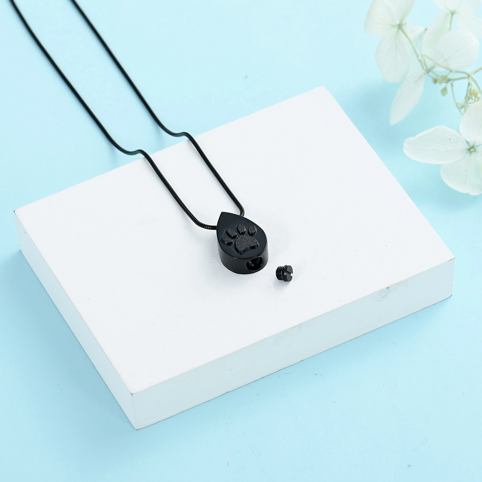 Naszyjnik / relikwiarz na prochy ze stali szlachetnej ŁEZKA Z ŁAPKĄ