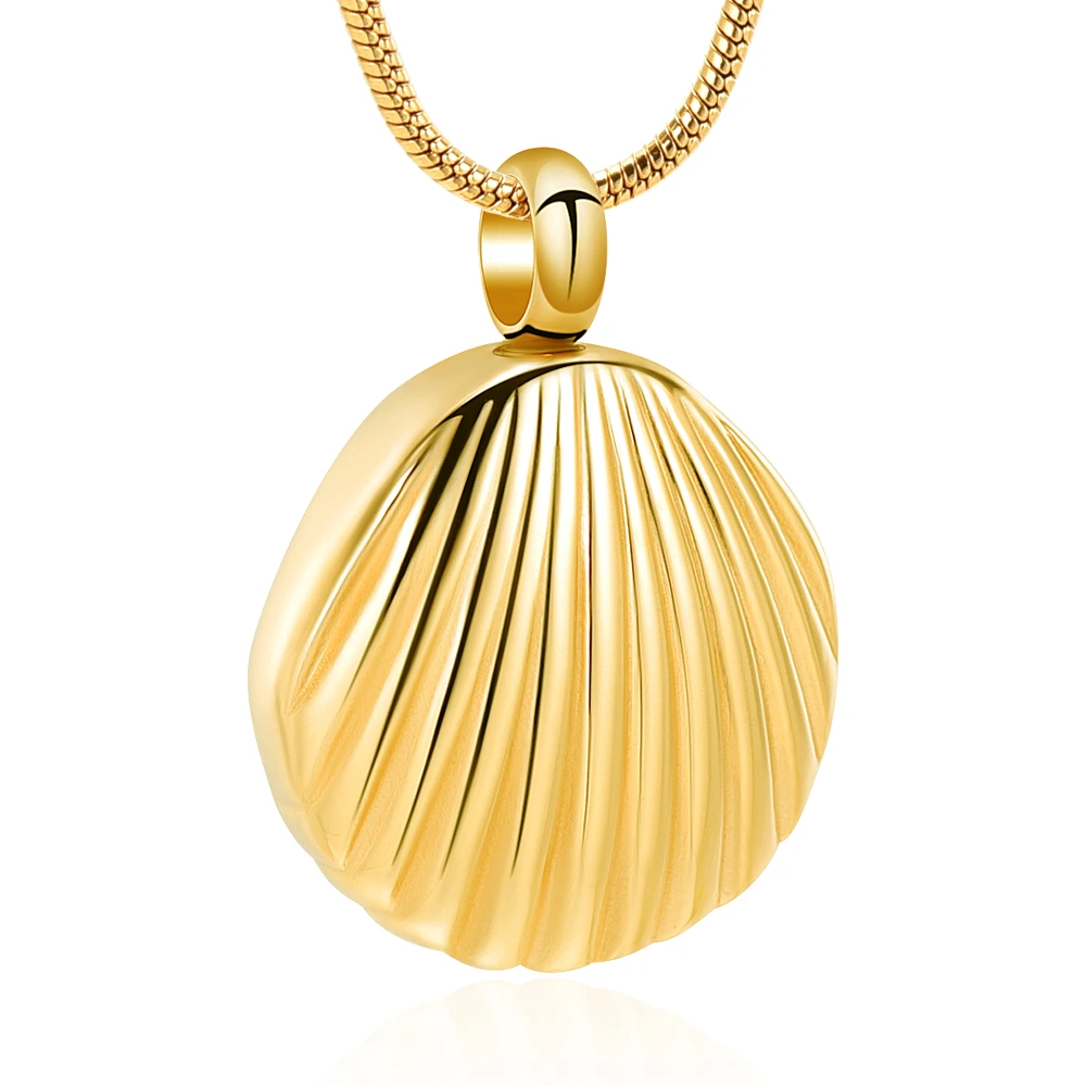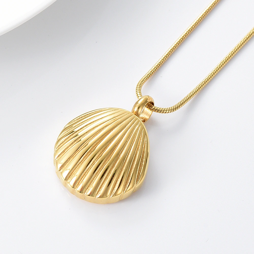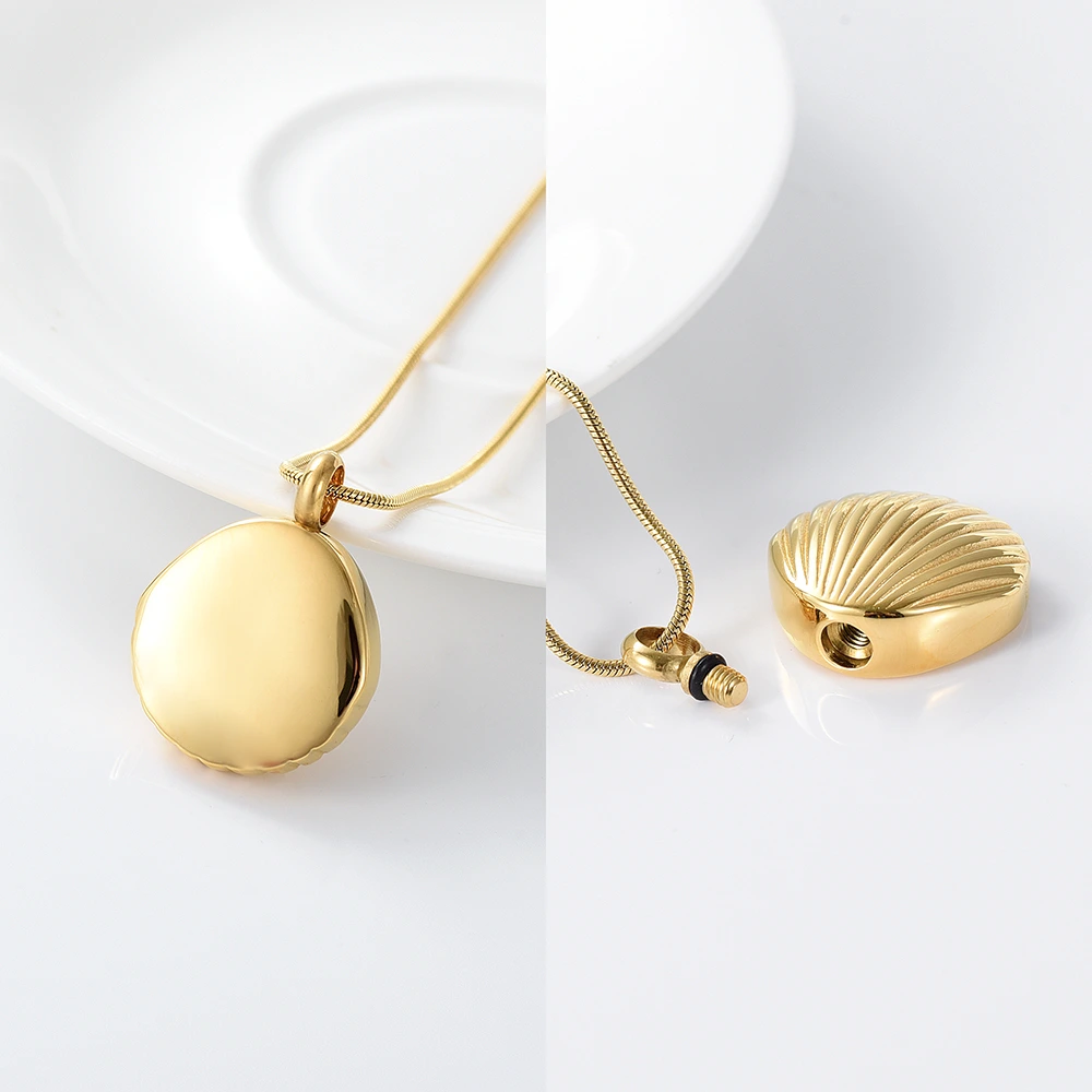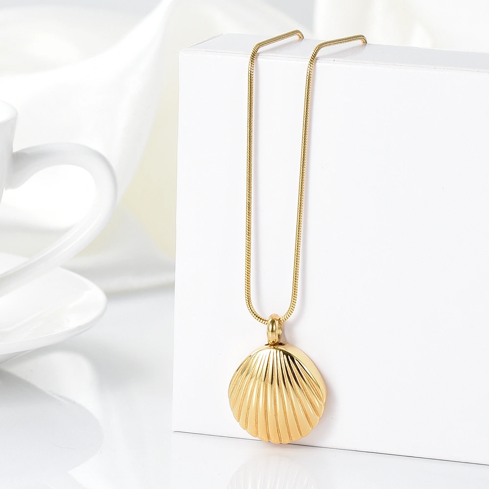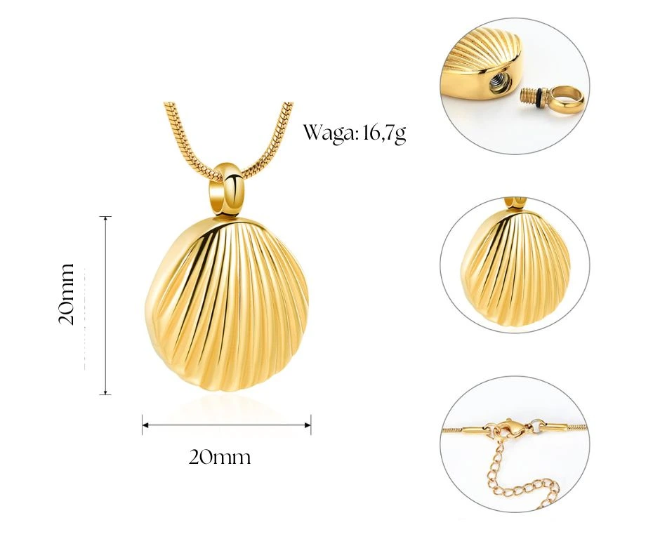 Naszyjnik / relikwiarz na prochy ze stali szlachetnej MUSZELKA GOLD