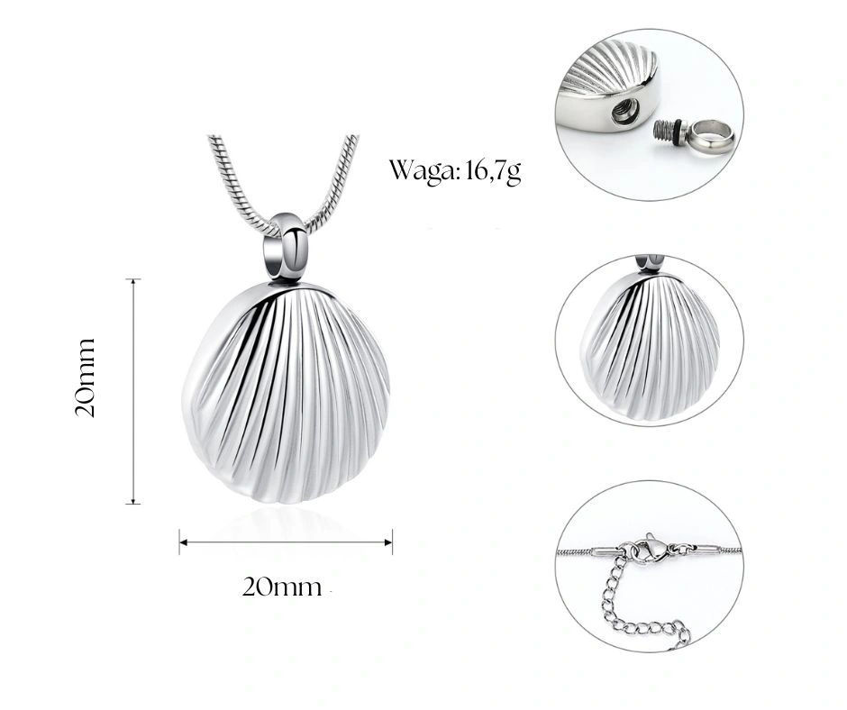 Naszyjnik / relikwiarz na prochy ze stali szlachetnej MUSZELKA SILVER