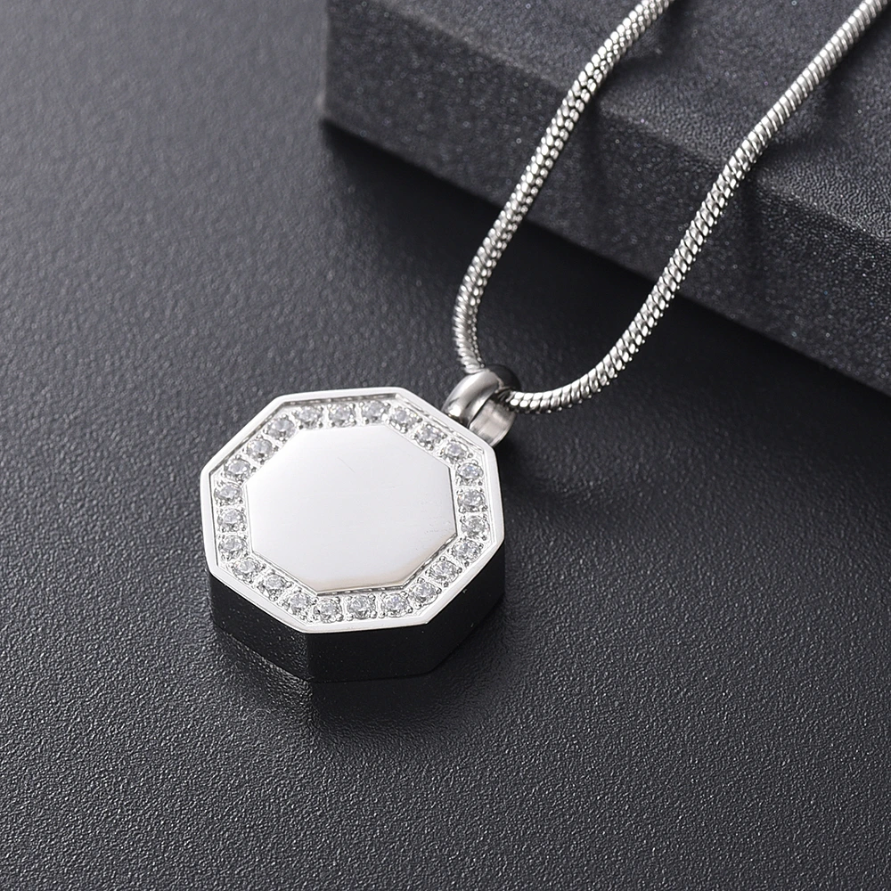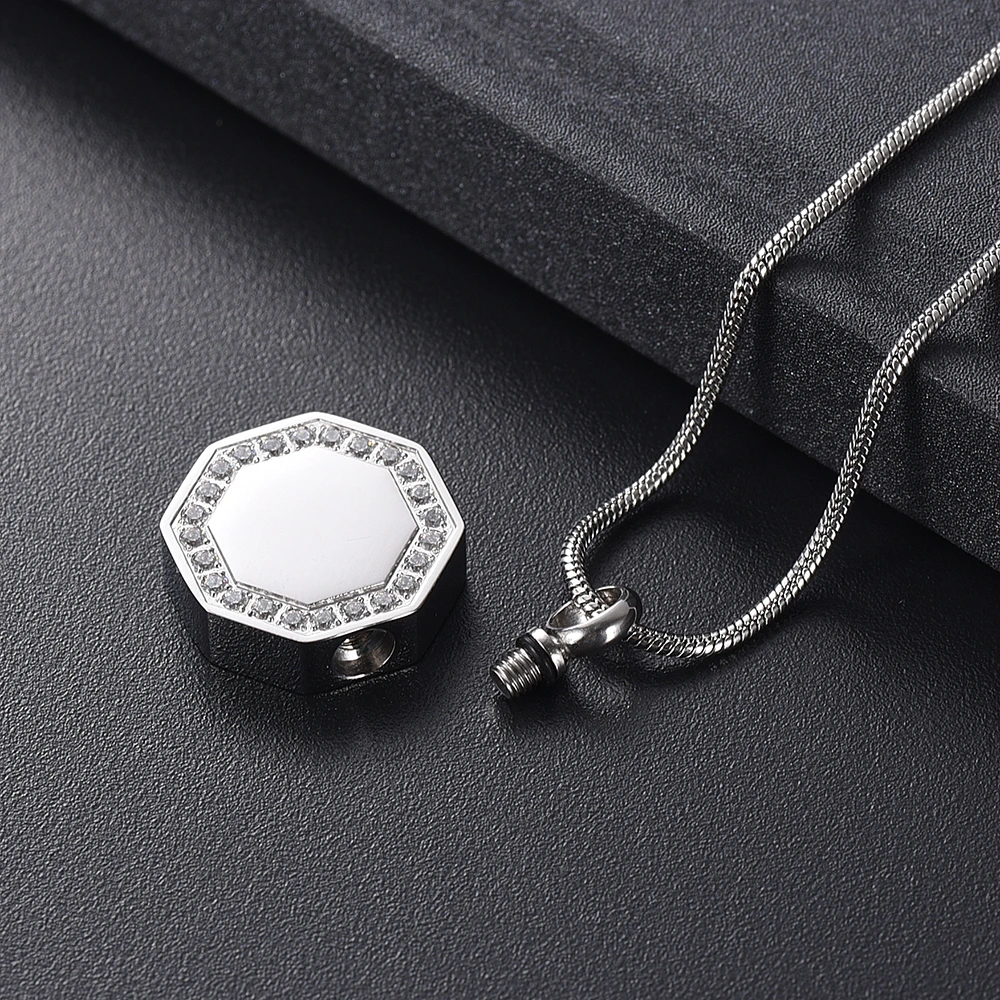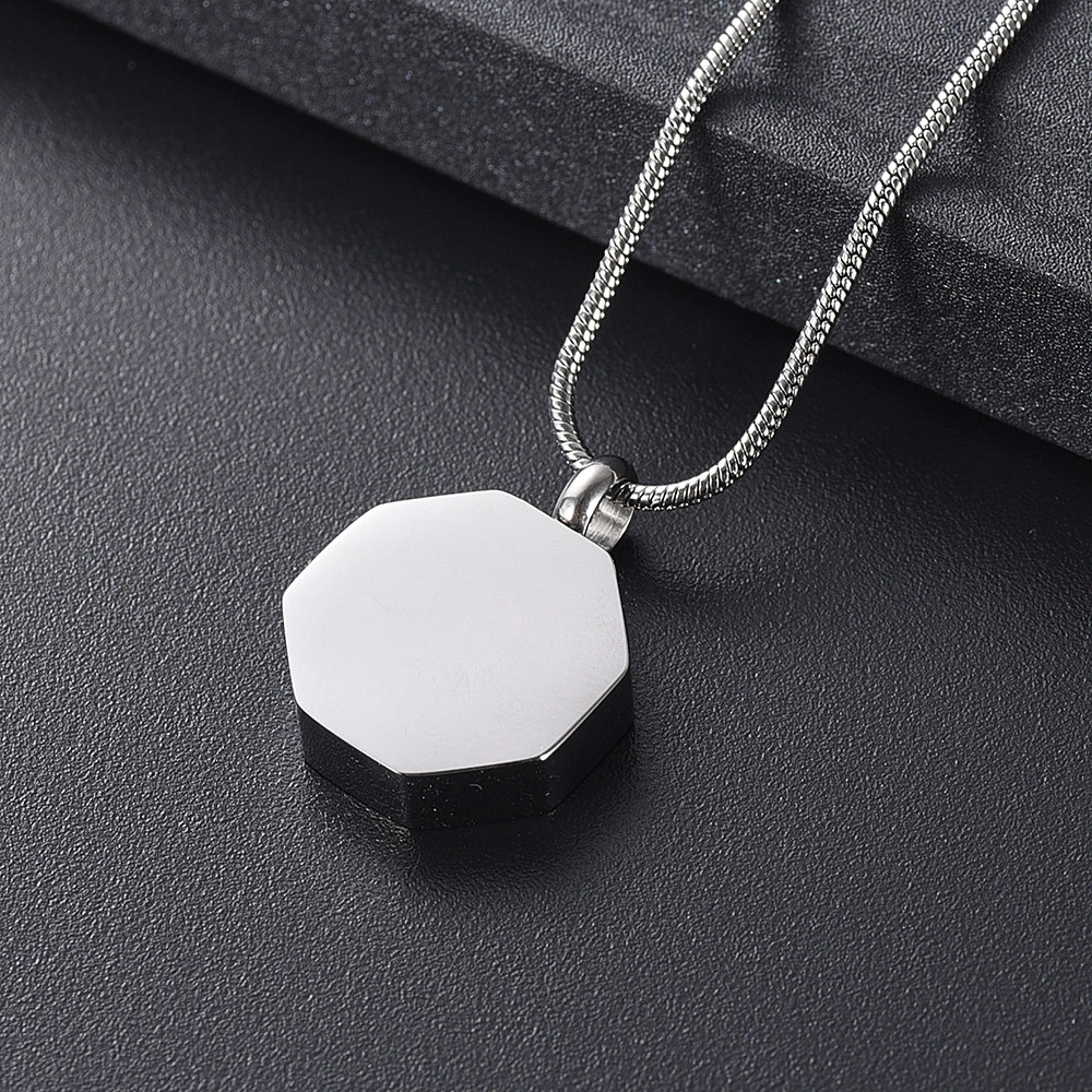 Naszyjnik relikwiarz - OKSAGON do samodzielnego napełnienia, składający się z wisiorka widocznego na zdjęciu oraz łańcuszka o splocie żyłkowym, o długości 50 cm.