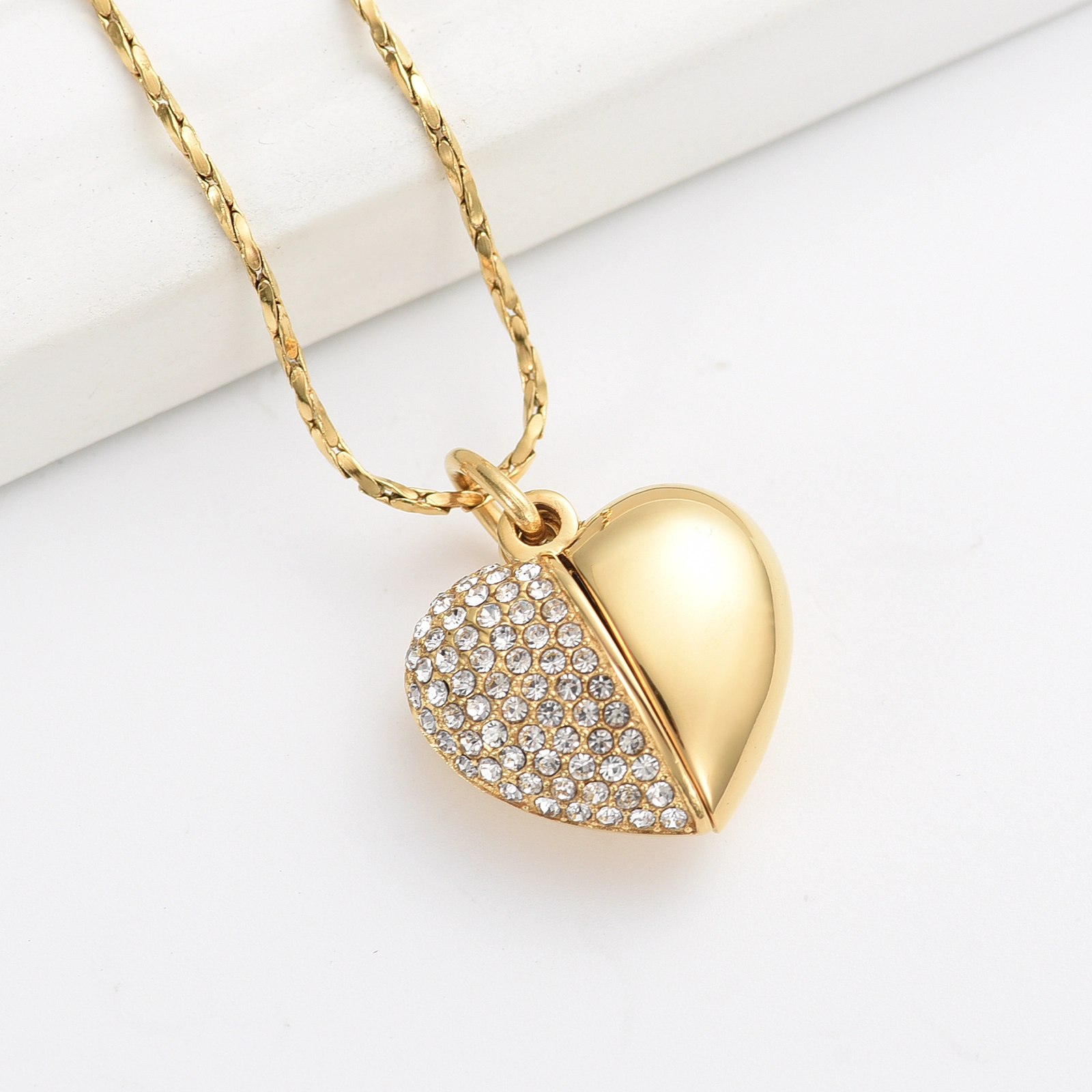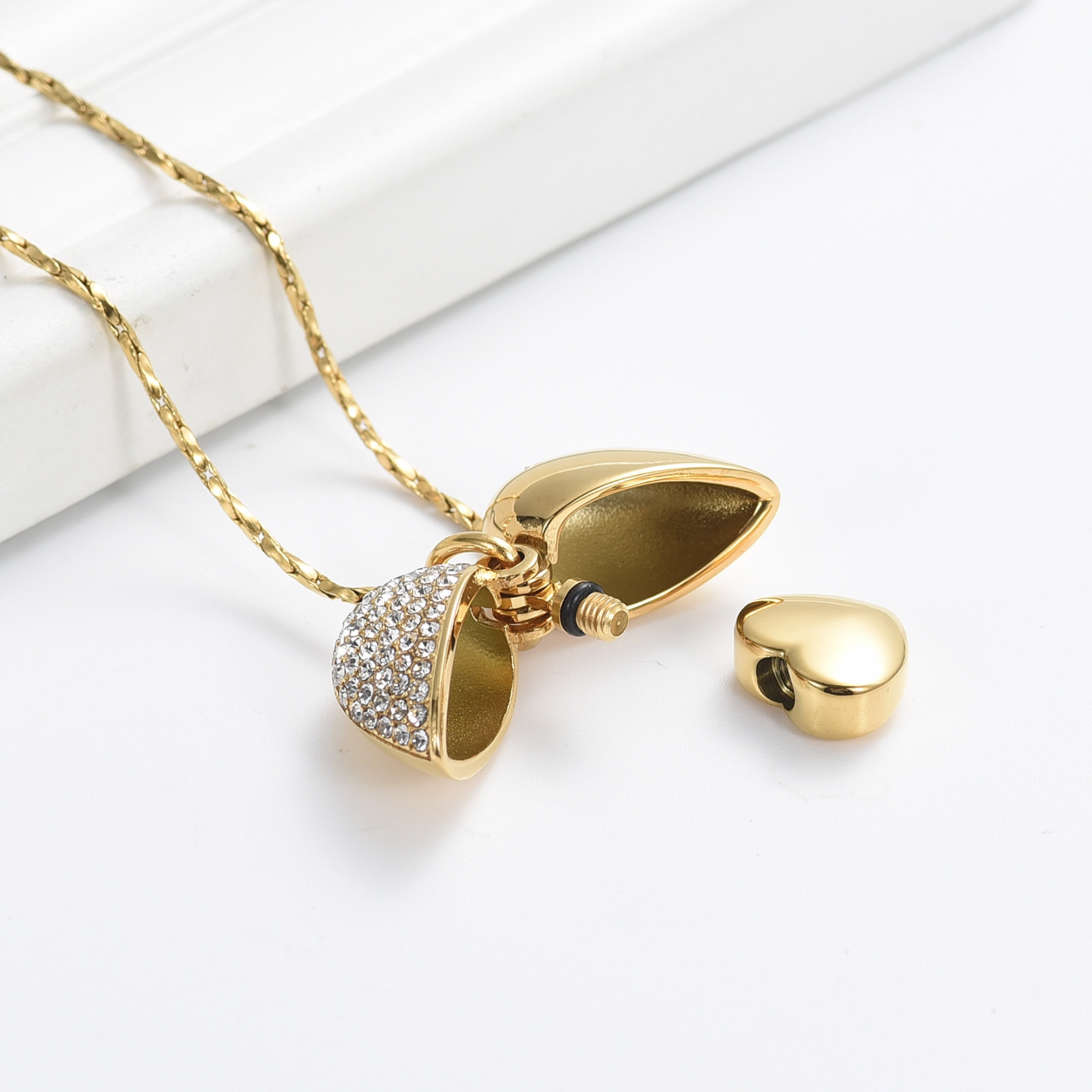 Naszyjnik / relikwiarz na prochy ze stali szlachetnej OTWARTE SERCE GOLD