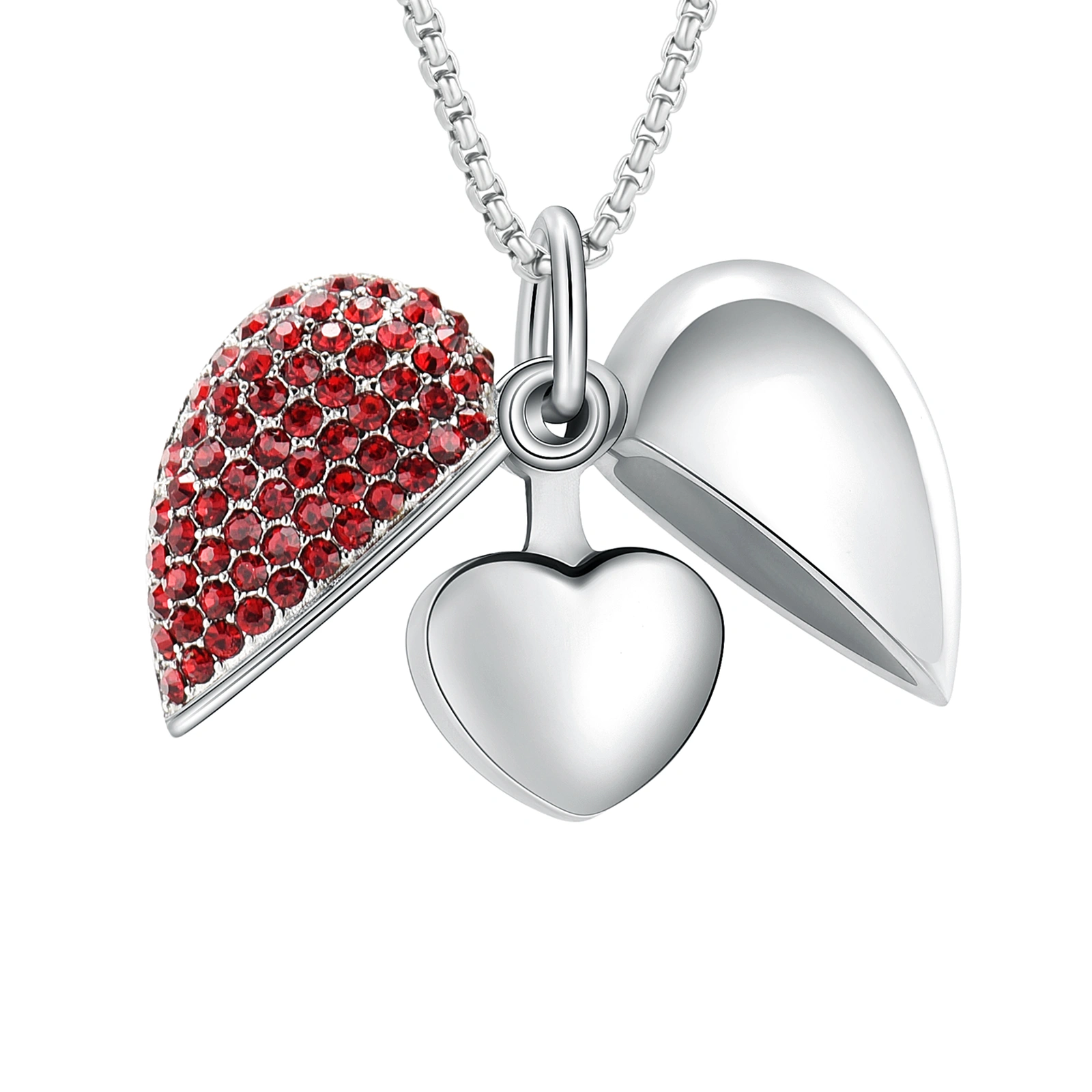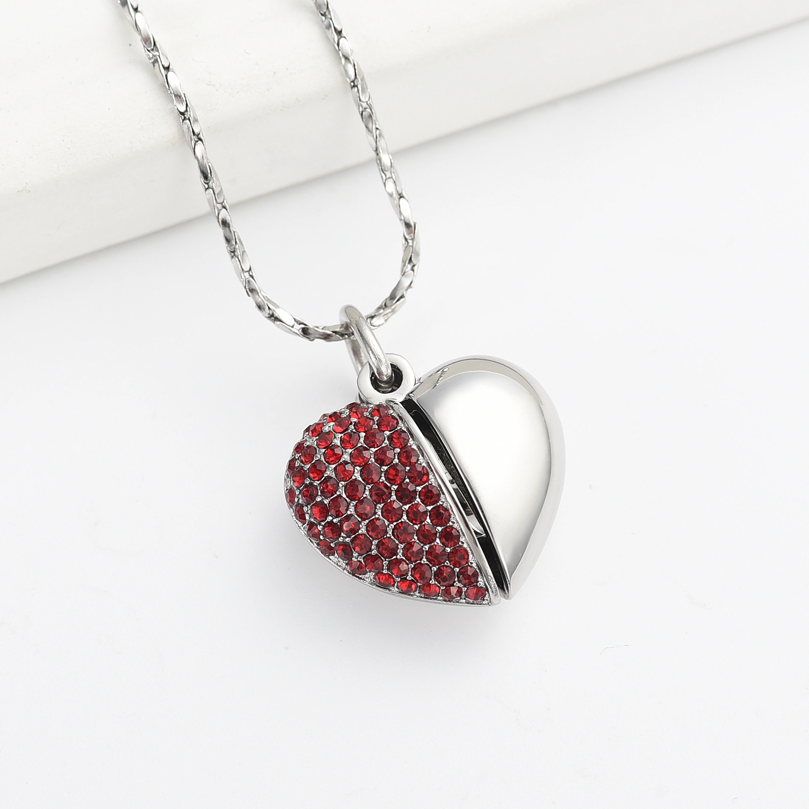 Naszyjnik / relikwiarz na prochy ze stali szlachetnej OTWARTE SERCE RED