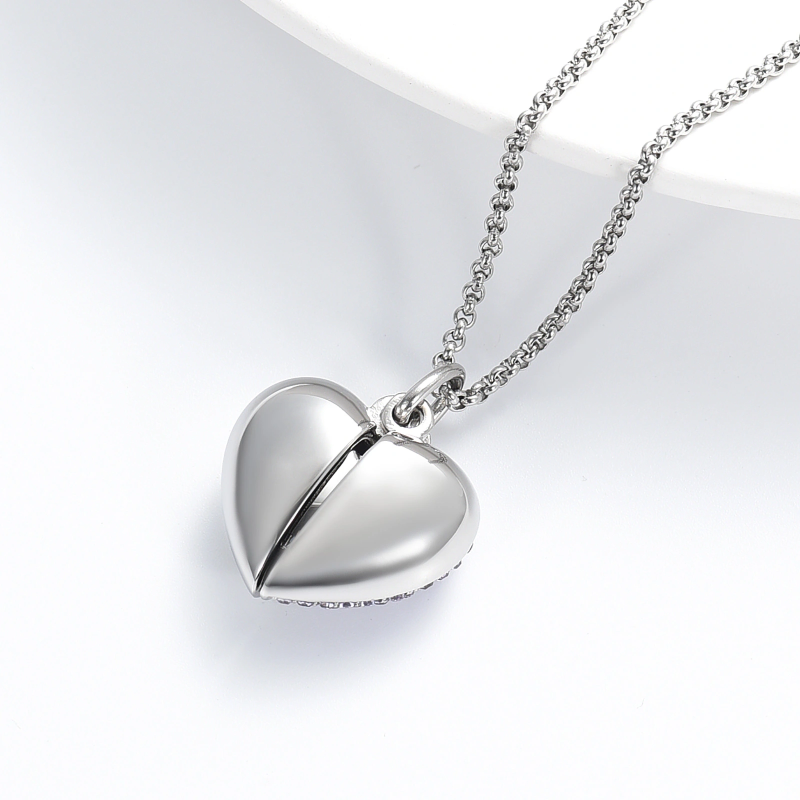 Naszyjnik / relikwiarz na prochy ze stali szlachetnej OTWARTE SERCE SILVER