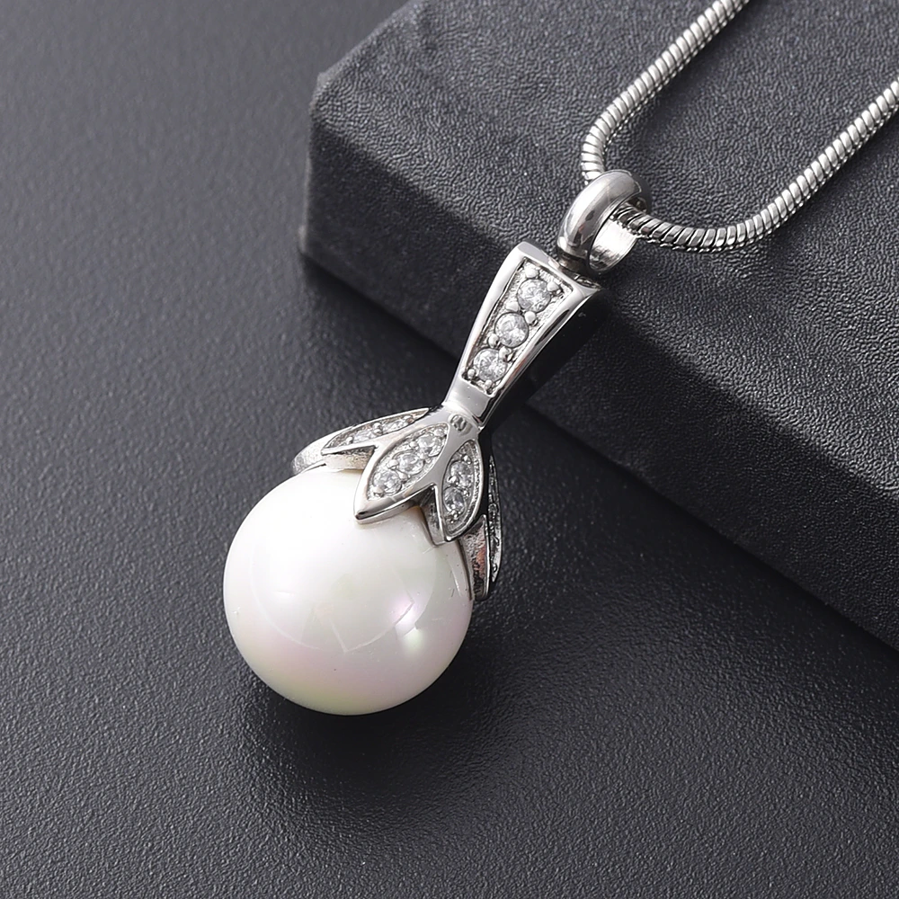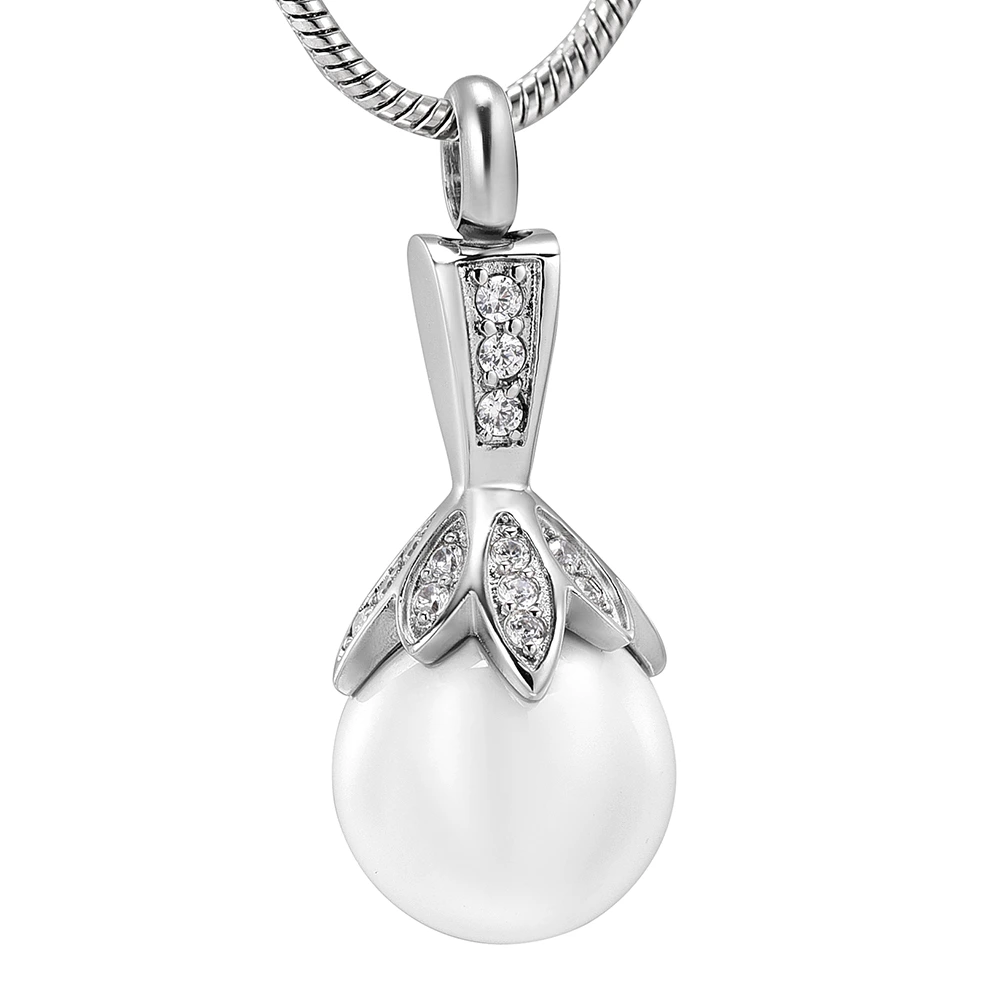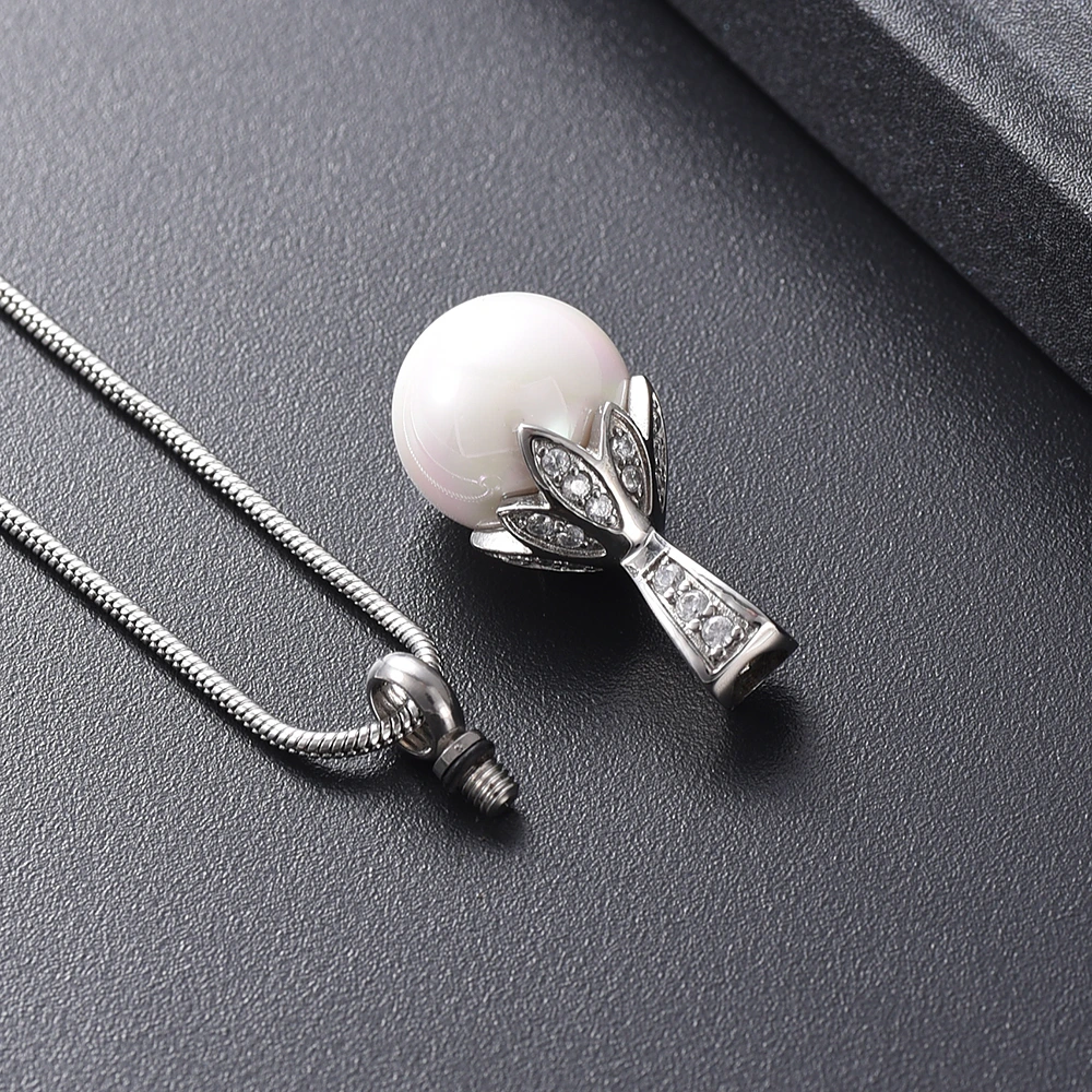 Naszyjnik / relikwiarz na prochy ze stali szlachetnej PERŁA W SREBRZE