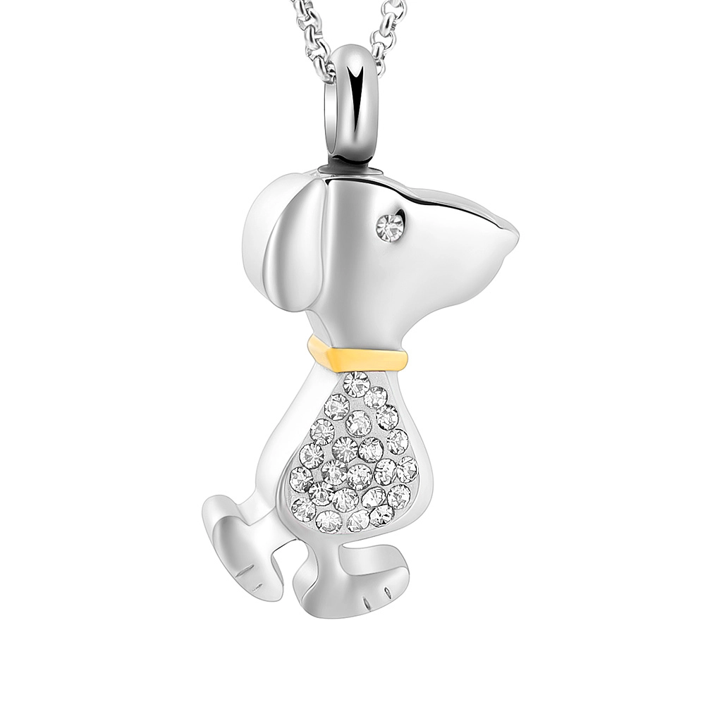 Naszyjnik relikwiarz - PIESEK do samodzielnego napełnienia, składający się z wisiorka widocznego na zdjęciu oraz łańcuszka o splocie żyłkowym, o długości 50 cm.