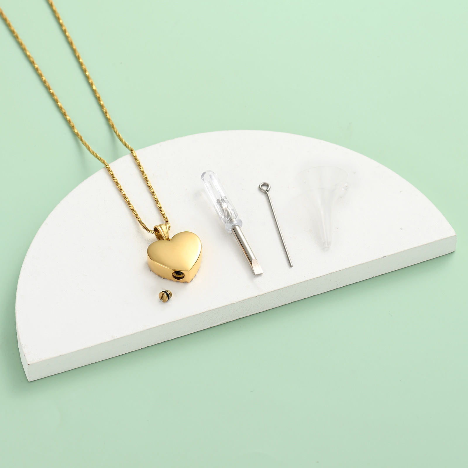 Naszyjnik / relikwiarz na prochy ze stali szlachetnej PROMYK W SERCU GOLD