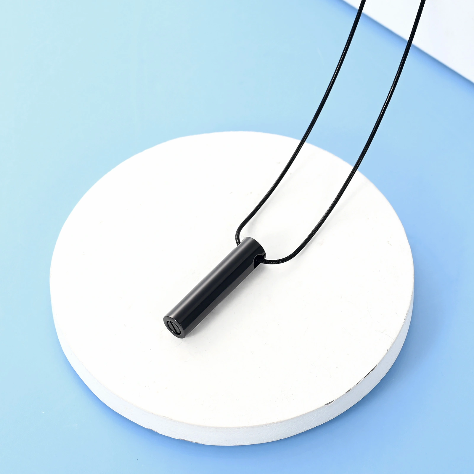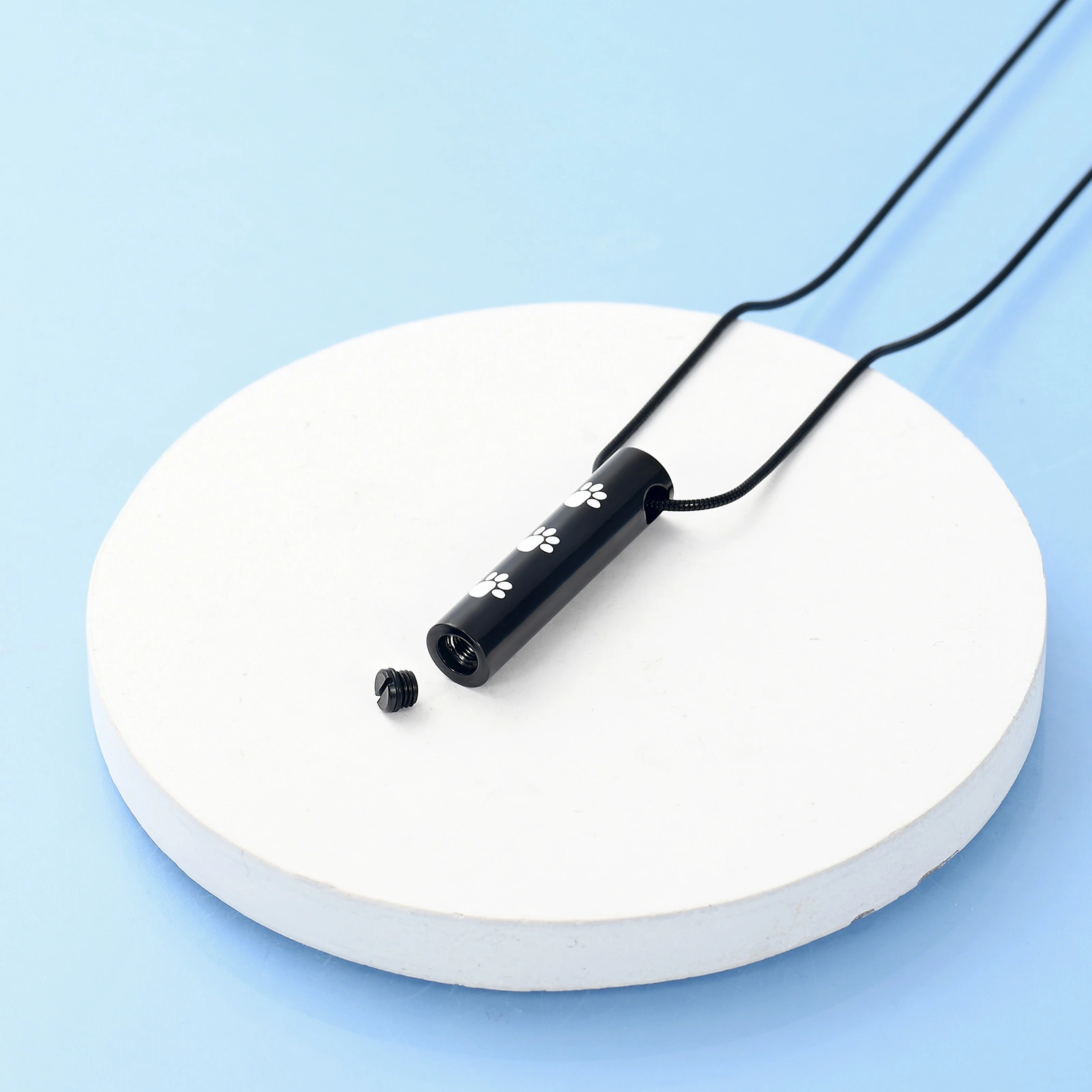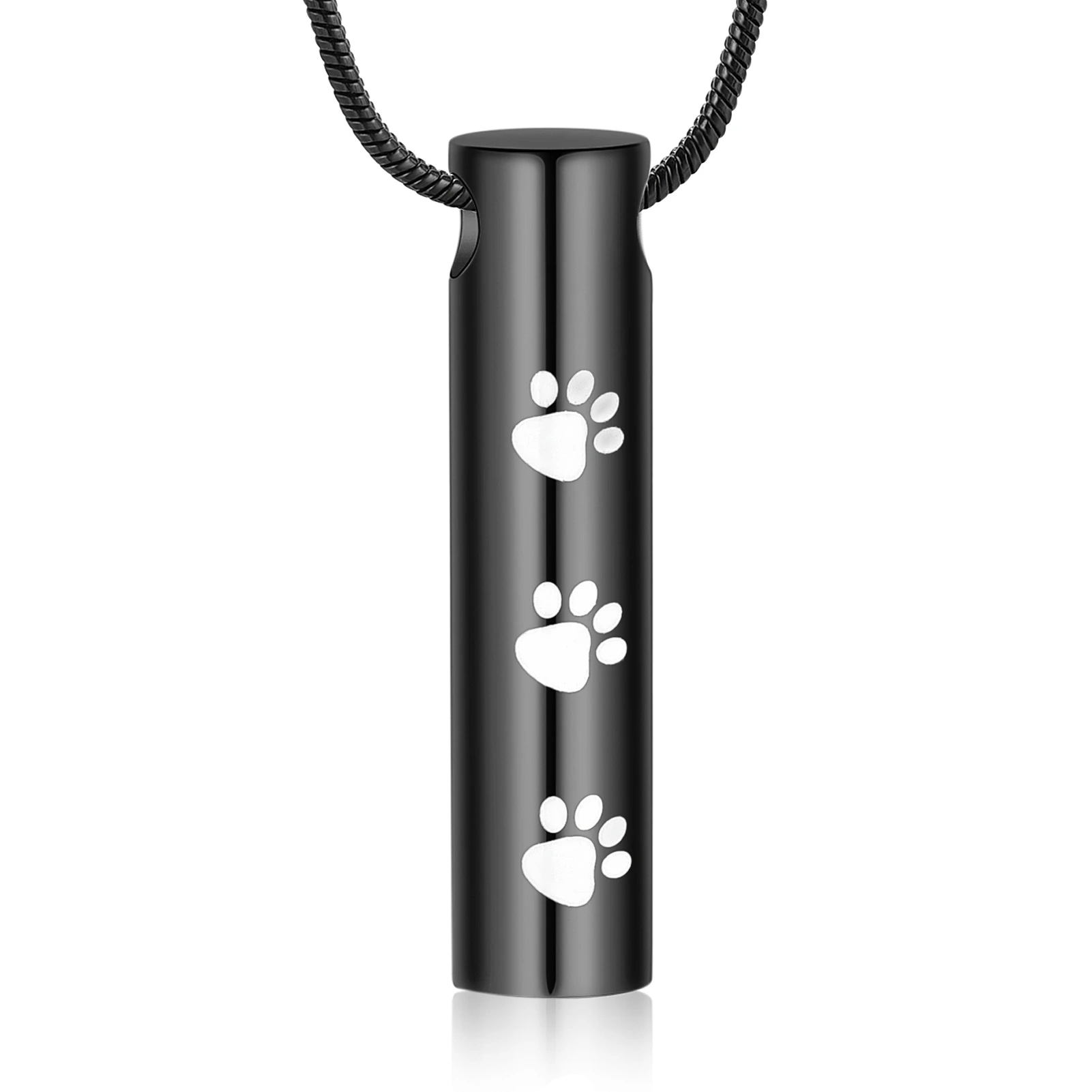 Naszyjnik relikwiarz - PSIE ŁAPKI w kolorze czarnym do samodzielnego napełnienia, składający się z wisiorka widocznego na zdjęciu oraz łańcuszka o splocie żyłkowym, o długości 50 cm.