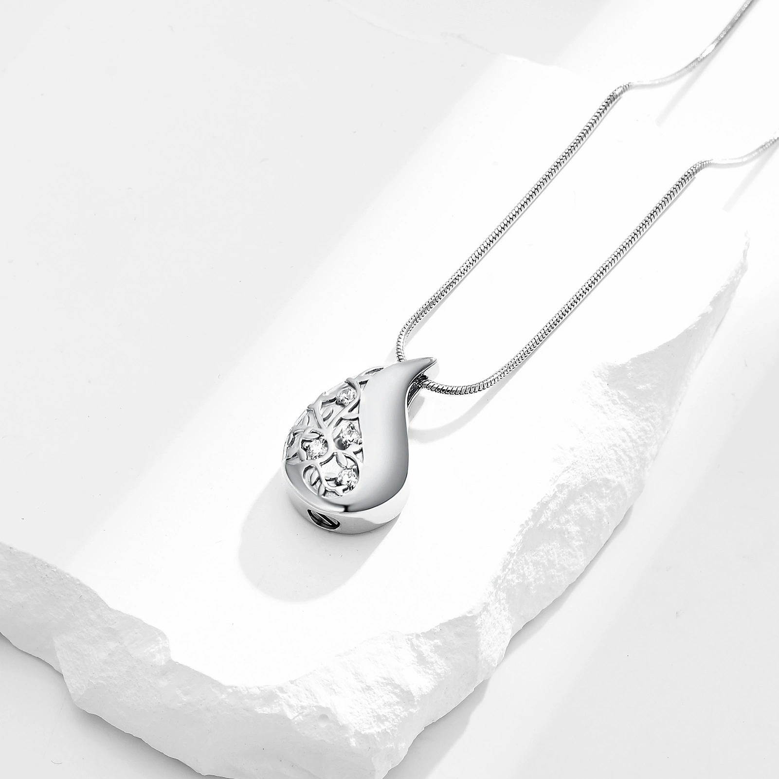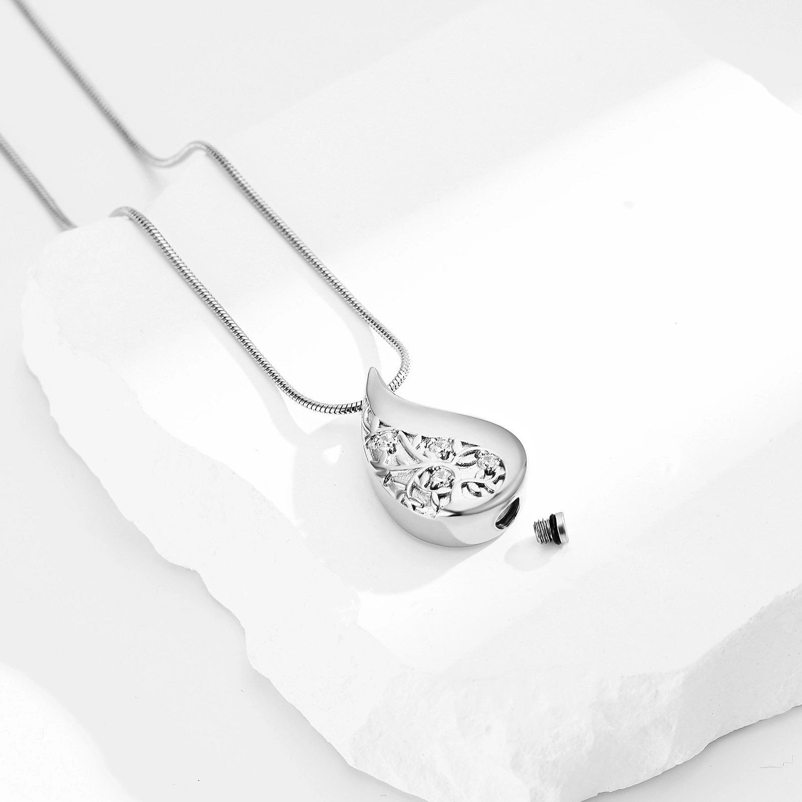 Naszyjnik / relikwiarz na prochy ze stali szlachetnej RZEŹBIONA KROPLA