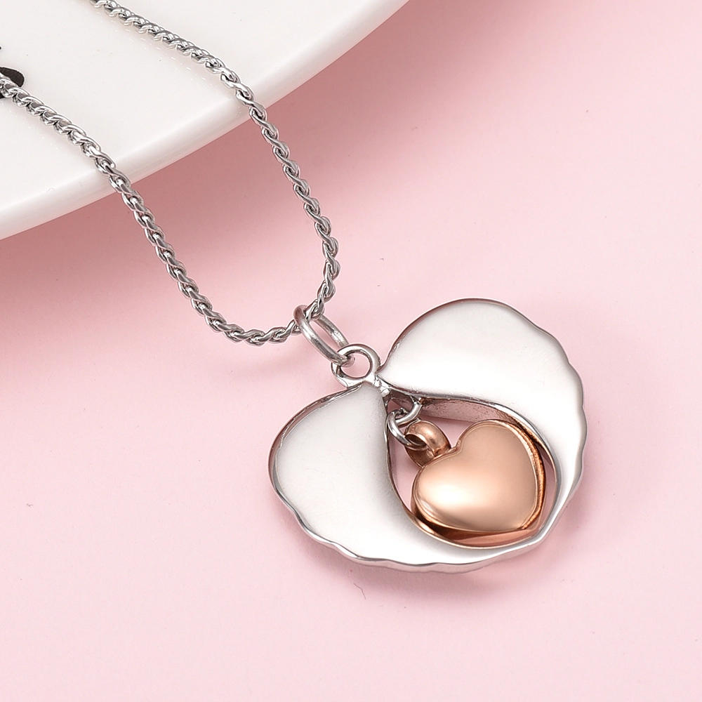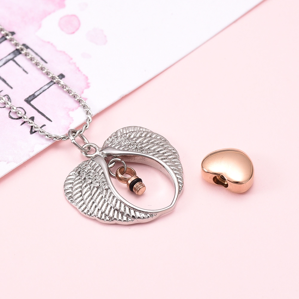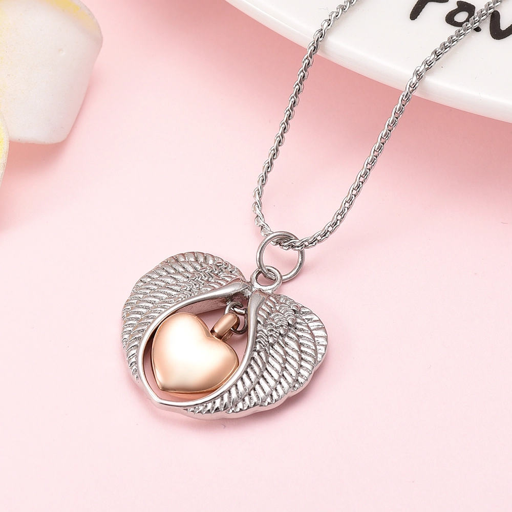 Naszyjnik / relikwiarz na prochy ze stali szlachetnej SERCE W PIÓRACH ROSE