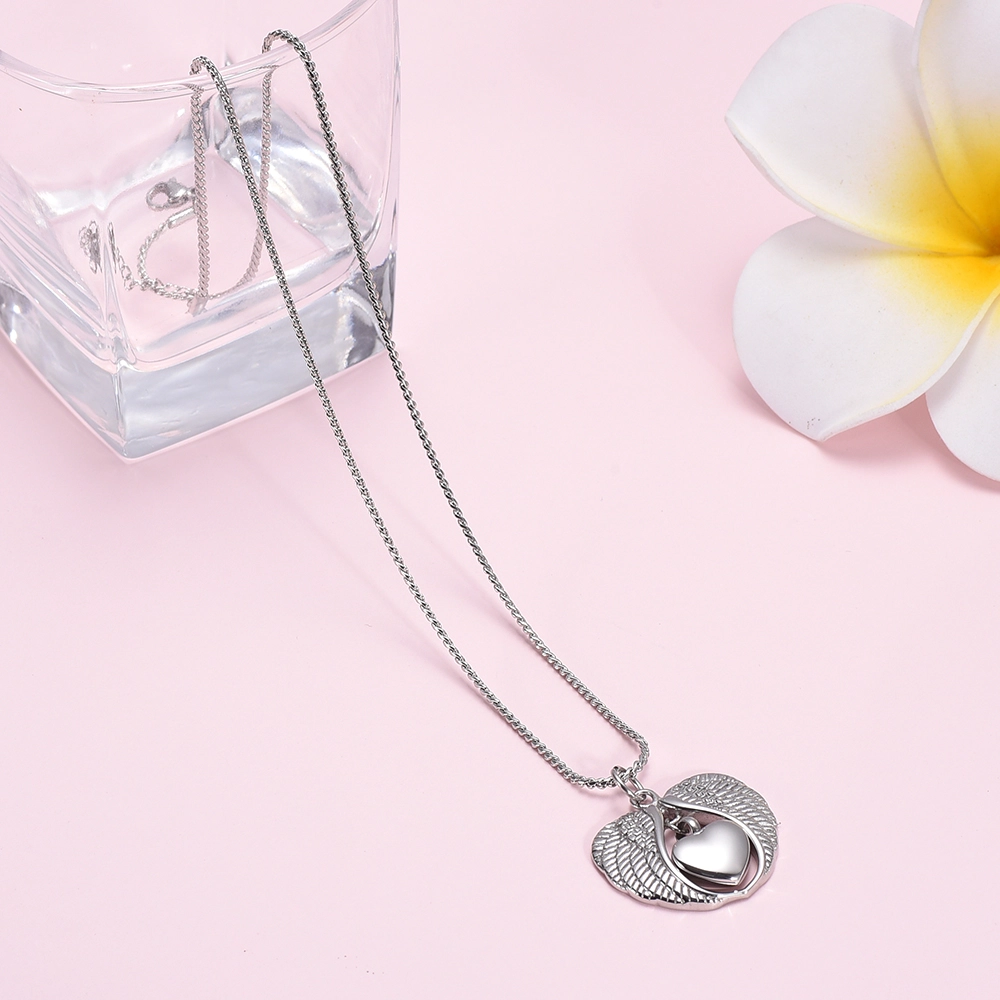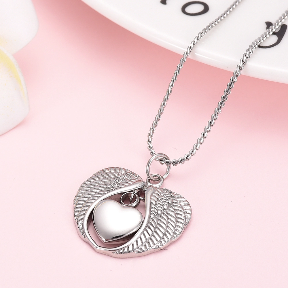 Naszyjnik / relikwiarz na prochy ze stali szlachetnej SERCE W PIÓRACH SILVER