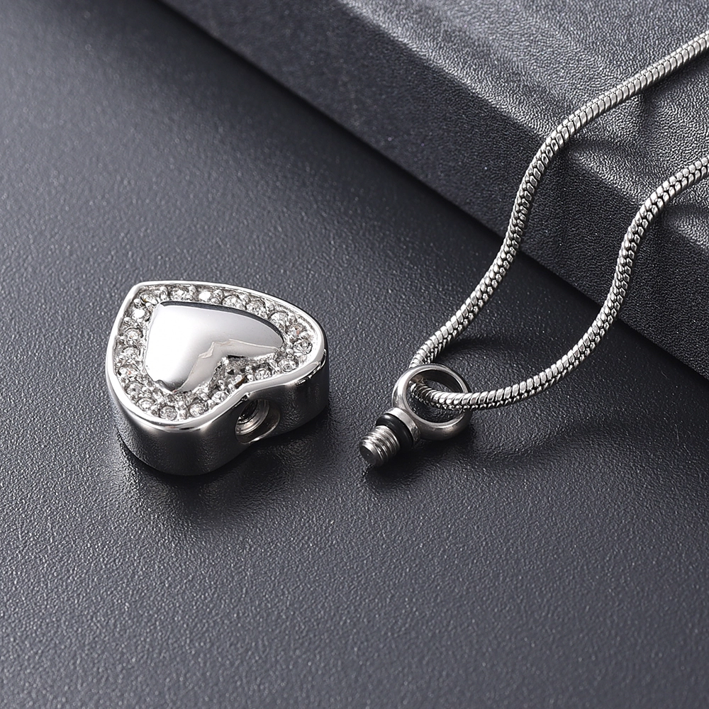 Naszyjnik / relikwiarz na prochy ze stali szlachetnej SERCE Z CYRKONIAMI SILVER