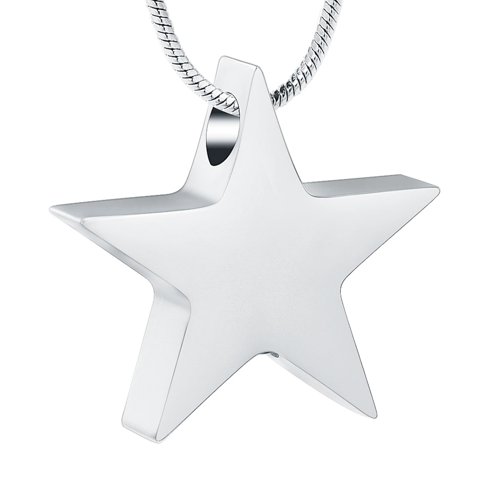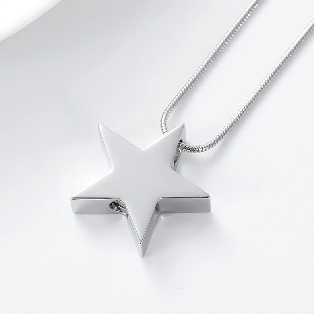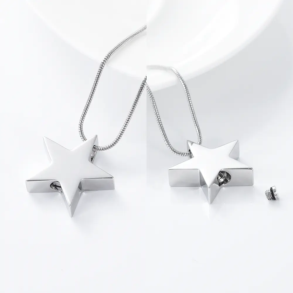 Naszyjnik / relikwiarz na prochy ze stali szlachetnej SREBRNA GWIAZDKA