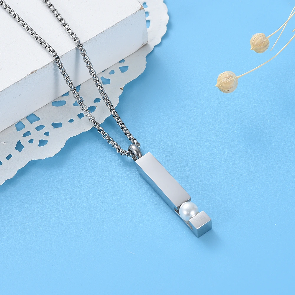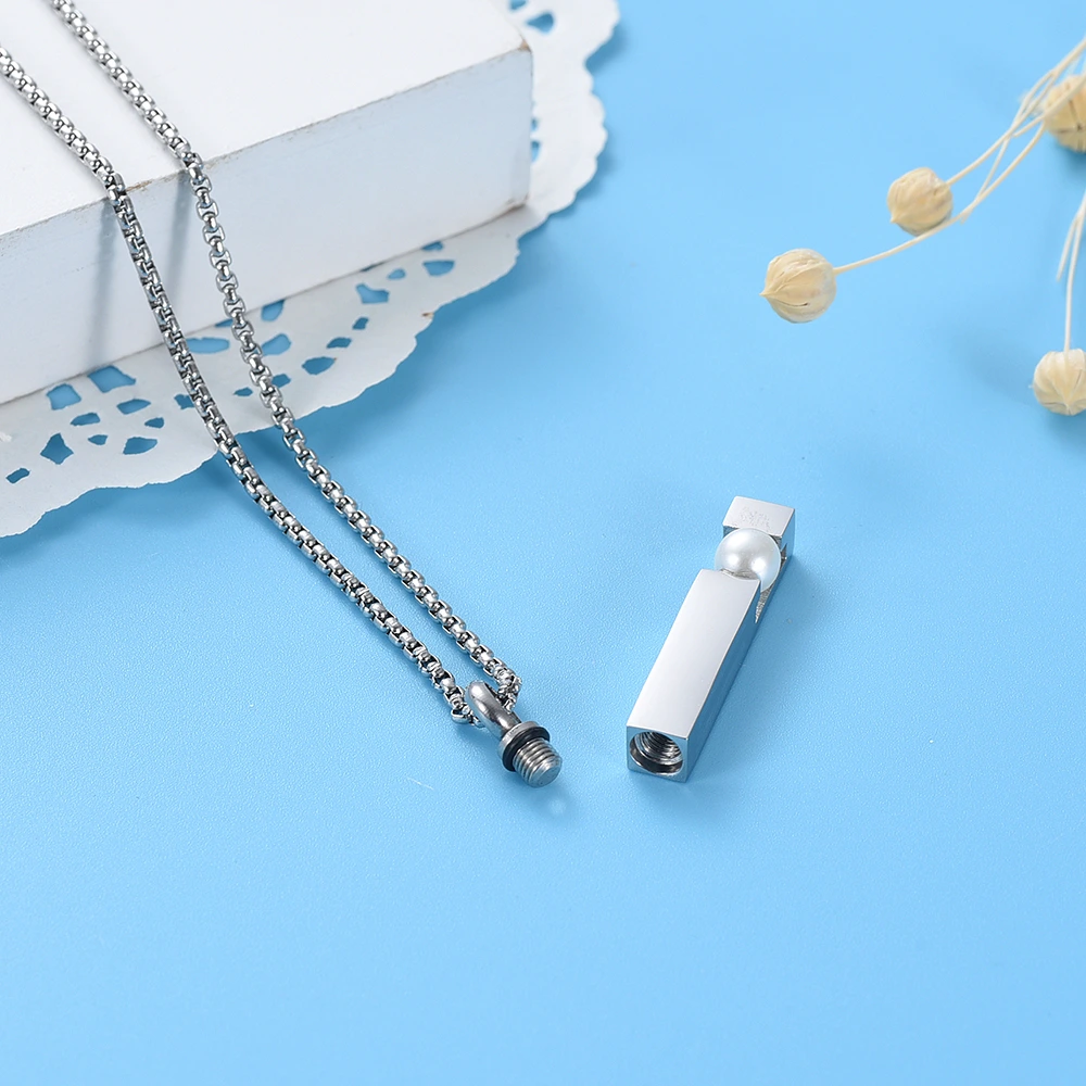 Naszyjnik / relikwiarz na prochy ze stali szlachetnej SZTABKA SREBRNA Z PERŁĄ