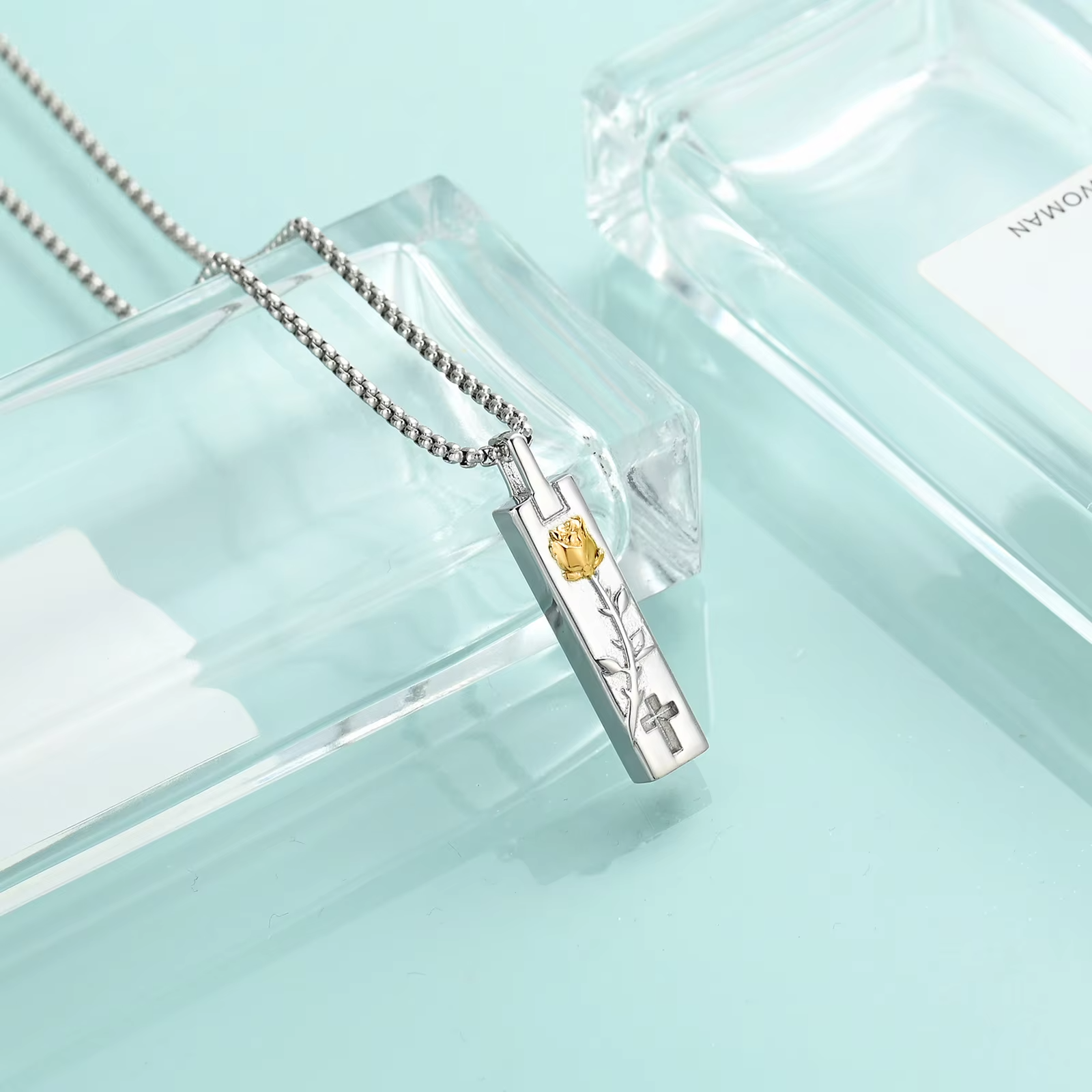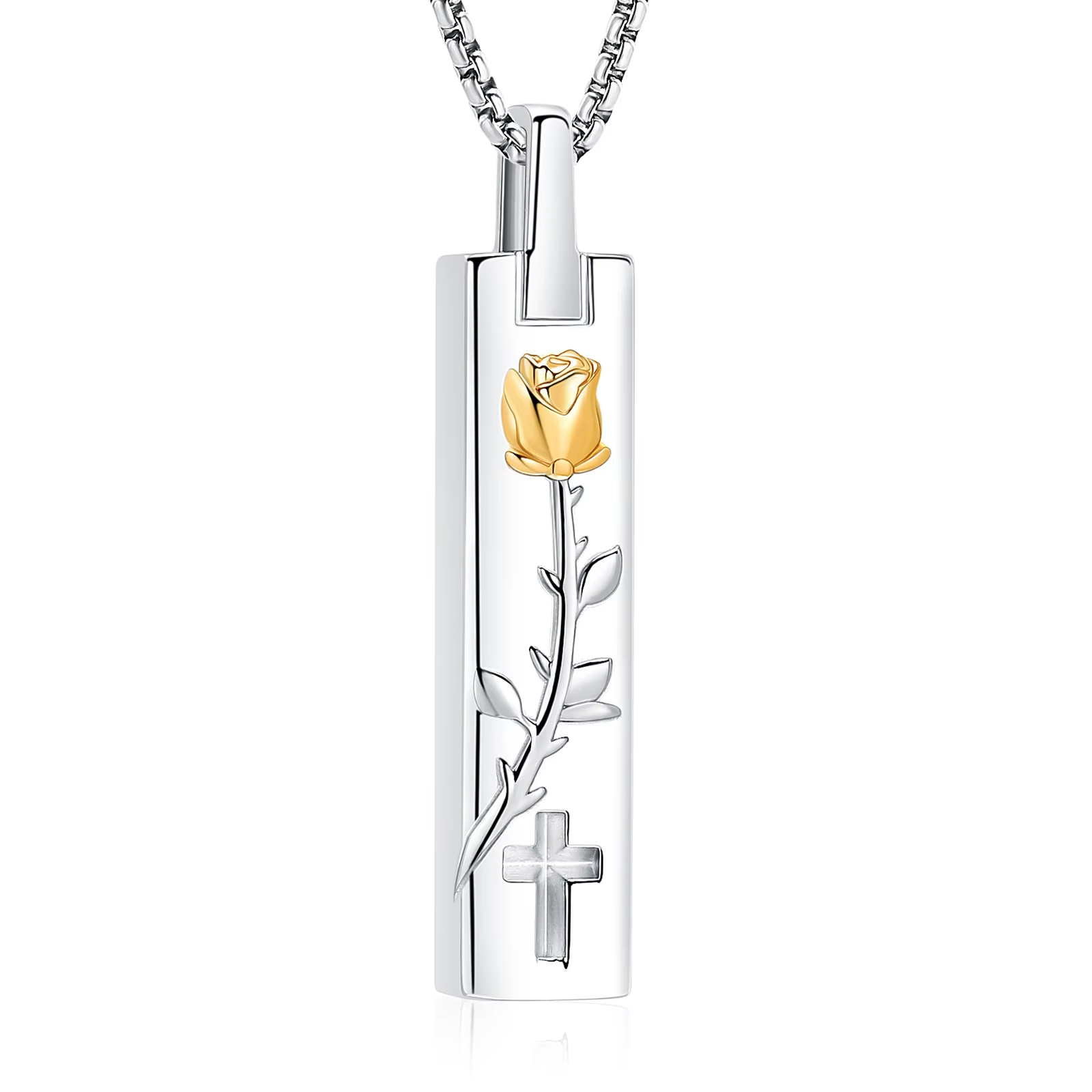 Naszyjnik / relikwiarz na prochy ze stali szlachetnej SZTABKA Z RÓŻĄ