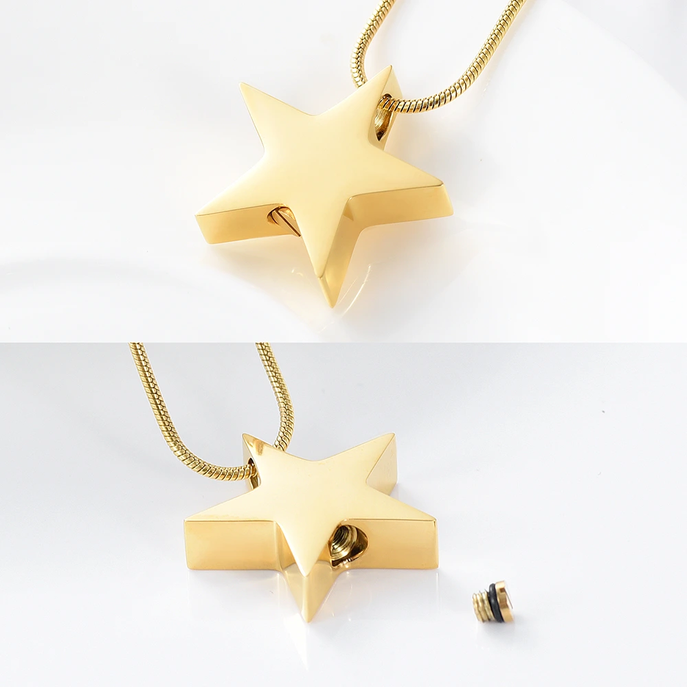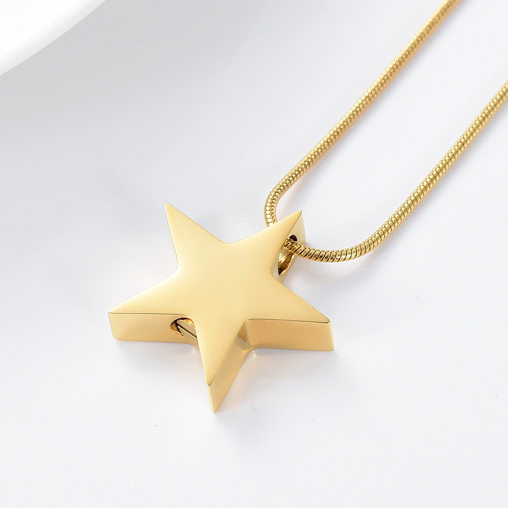 Naszyjnik / relikwiarz na prochy ze stali szlachetnej ZŁOTA GWIAZDKA