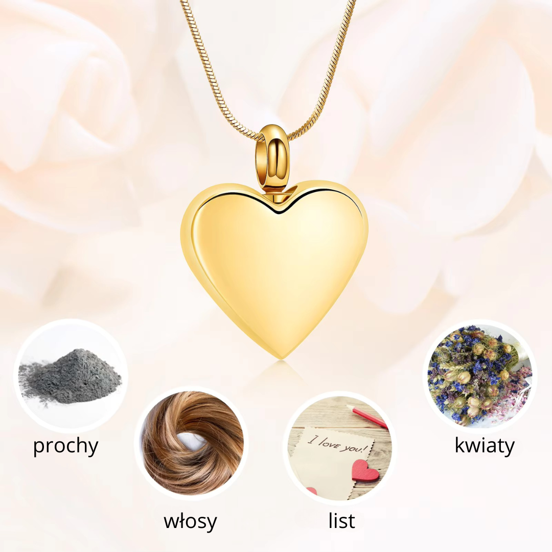 Naszyjnik / relikwiarz na prochy ze stali szlachetnej ZŁOTE SERCE